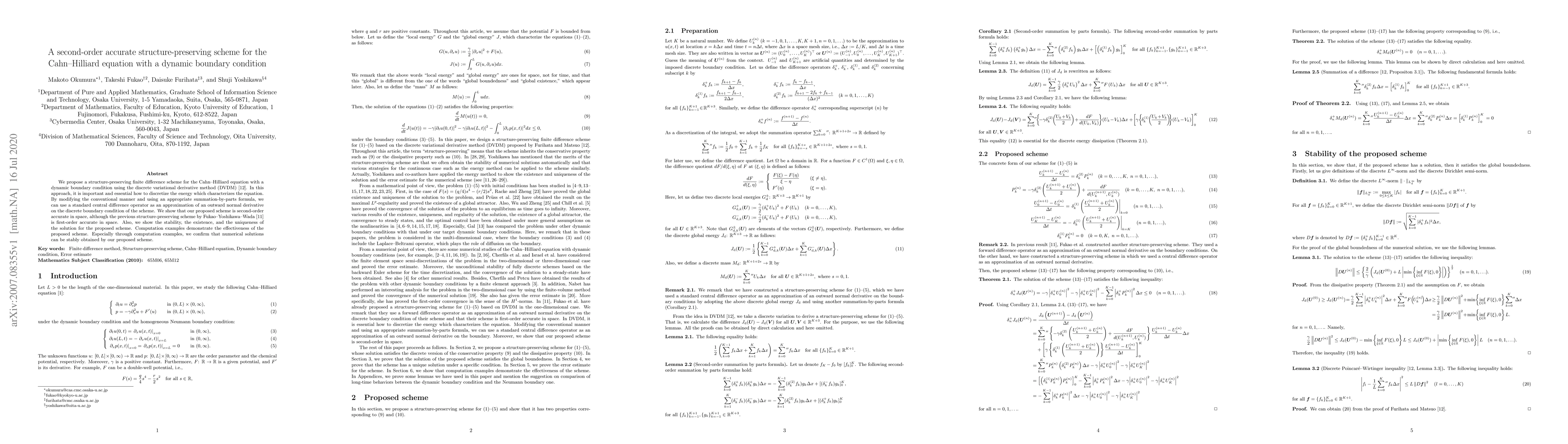 This paper proposes a second-order accurate, structure-preserving finite difference scheme for the Cahn-Hilliard equation with dynamic boundary conditions using the discrete variational derivative method. The scheme demonstrates improved accuracy over previous first-order methods and shows stability, existence, and uniqueness of solutions.