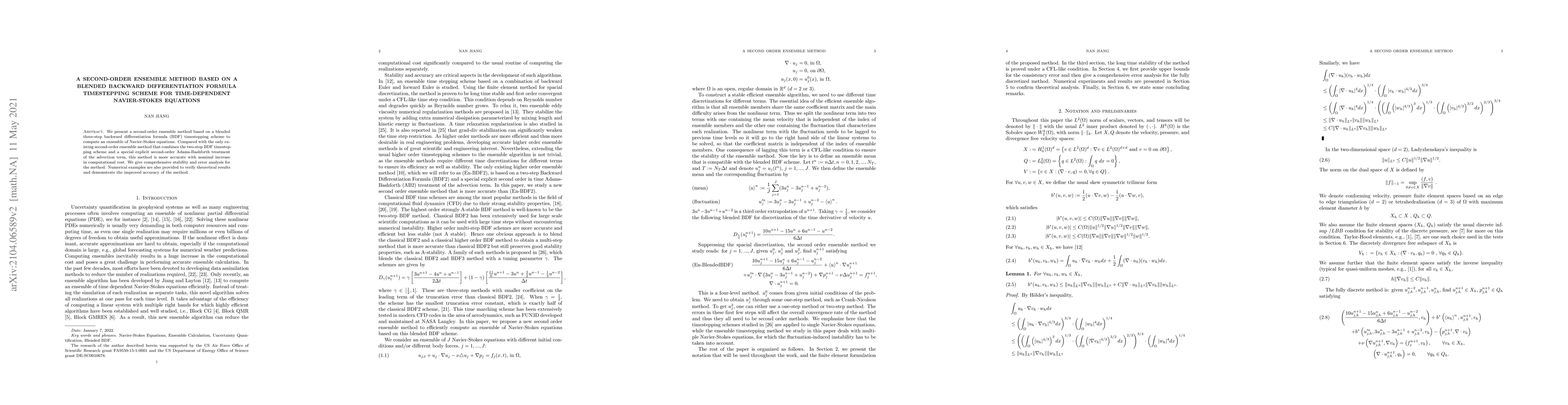 This paper introduces a second-order ensemble method using a blended three-step backward differentiation formula (BDF) for solving time-dependent Navier-Stokes equations, offering improved accuracy over existing methods with minimal computational cost increase. The method's stability and error are thoroughly analyzed, and numerical examples validate its enhanced precision.