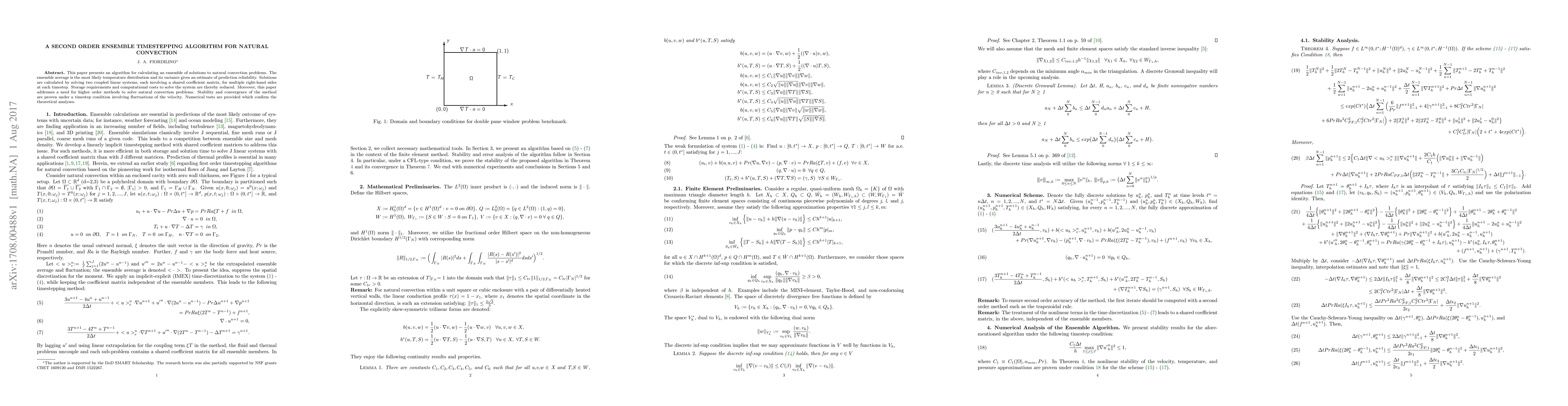 This paper presents an algorithm for calculating an ensemble of solutions to natural convection problems. The ensemble average is the most likely temperature distribution and its variance gives an estimate of prediction reliability. Solutions are calculated by solving two coupled linear systems, each involving a shared coefficient matrix, for multiple right-hand sides at each timestep. Storage requirements and computational costs to solve the system are thereby reduced. Moreover, this paper addresses a need for higher order methods to solve natural convection problems. Stability and convergence of the method are proven under a timestep condition involving fluctuations of the velocity. Numerical tests are provided which confirm the theoretical analyses.