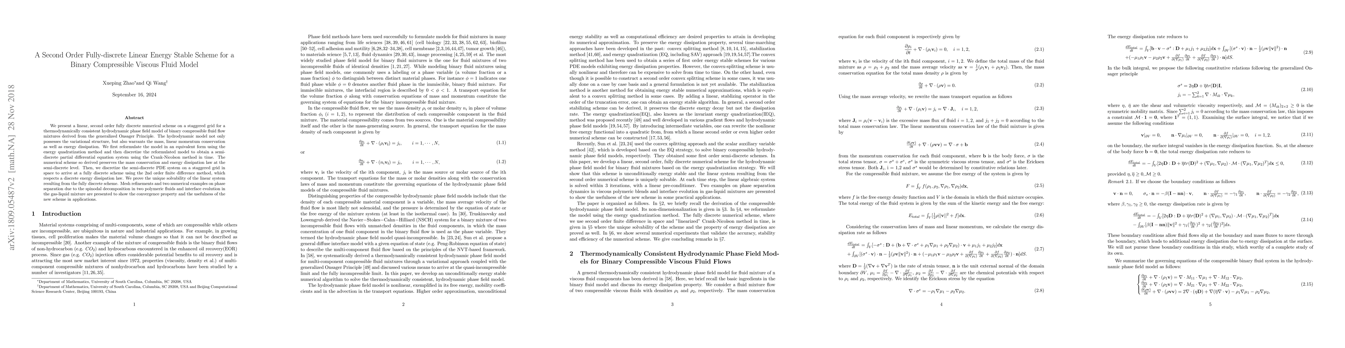 This paper introduces a new numerical scheme for simulating binary compressible fluid flow mixtures that preserves mass conservation and energy dissipation, with successful applications in phase separation and interface evolution scenarios.