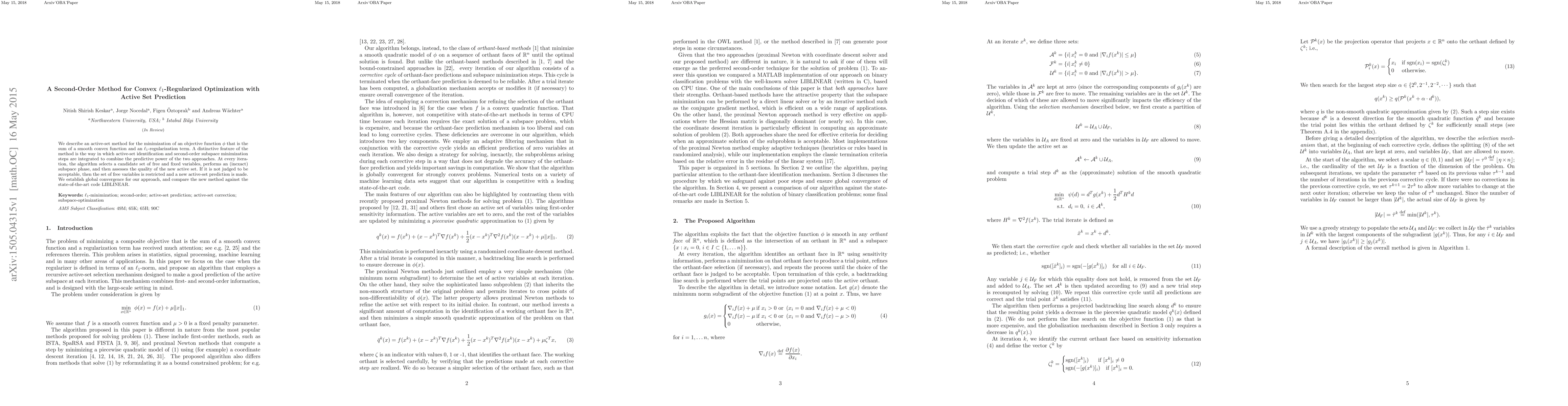 Researchers developed an active-set method for optimizing convex functions with $ell_1$ regularization, combining subspace minimization and active set prediction to achieve global convergence.
