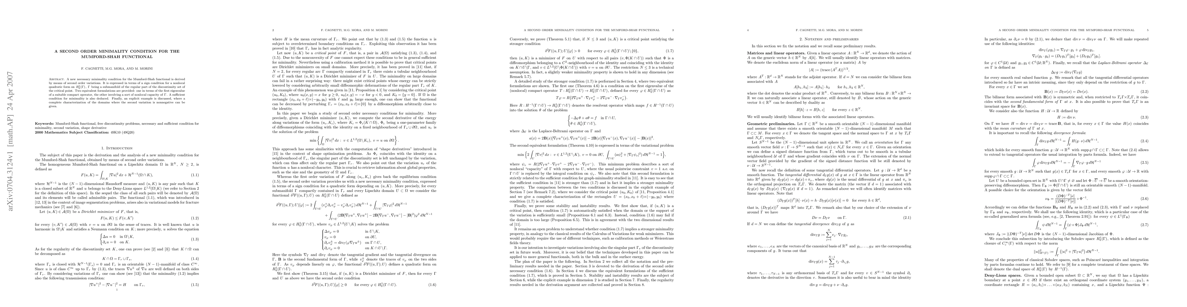 Researchers derive a new necessary condition for the Mumford-Shah functional to be minimal, expressed in terms of a sign condition on a nonlocal quadratic form, and provide equivalent formulations involving eigenvalues or nonlocal capacity.