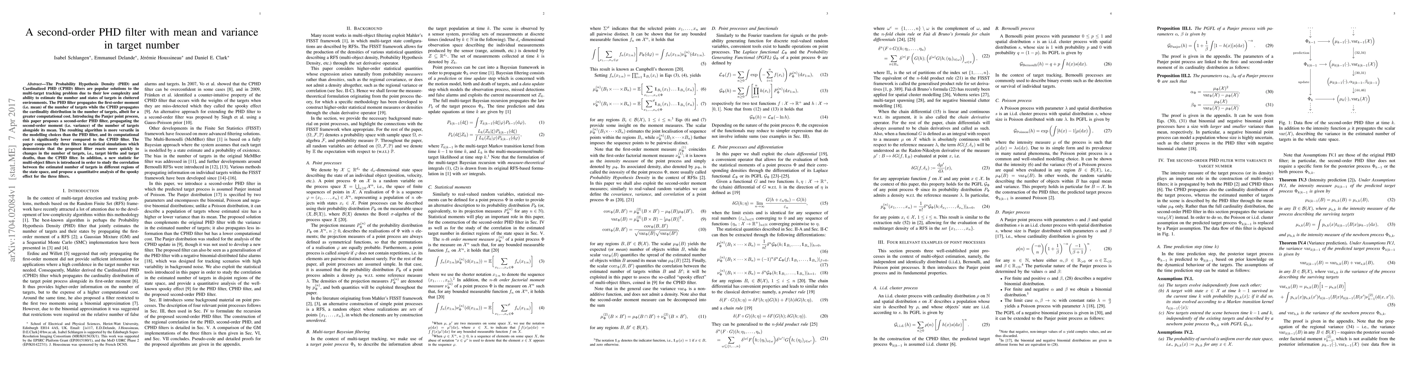 The Probability Hypothesis Density (PHD) and Cardinalized PHD (CPHD) filters are popular solutions to the multi-target tracking problem due to their low complexity and ability to estimate the number and states of targets in cluttered environments. The PHD filter propagates the first-order moment (i.e. mean) of the number of targets while the CPHD propagates the cardinality distribution in the number of targets, albeit for a greater computational cost. Introducing the Panjer point process, this paper proposes a second-order PHD filter, propagating the second-order moment (i.e. variance) of the number of targets alongside its mean. The resulting algorithm is more versatile in the modelling choices than the PHD filter, and its computational cost is significantly lower compared to the CPHD filter. The paper compares the three filters in statistical simulations which demonstrate that the proposed filter reacts more quickly to changes in the number of targets, i.e., target births and target deaths, than the CPHD filter. In addition, a new statistic for multi-object filters is introduced in order to study the correlation between the estimated number of targets in different regions of the state space, and propose a quantitative analysis of the spooky effect for the three filters.