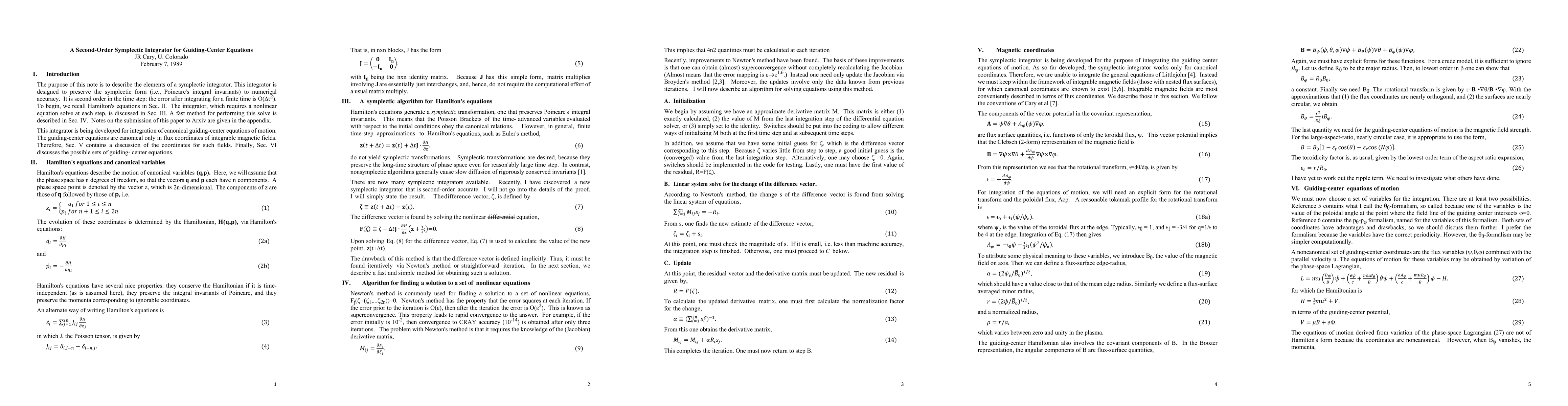 This paper had no abstract originally. A second-order symplectic integration algorithm for guiding center motion is presented. The algorithm is based on the Poincar\'e (mid-point) generating function.