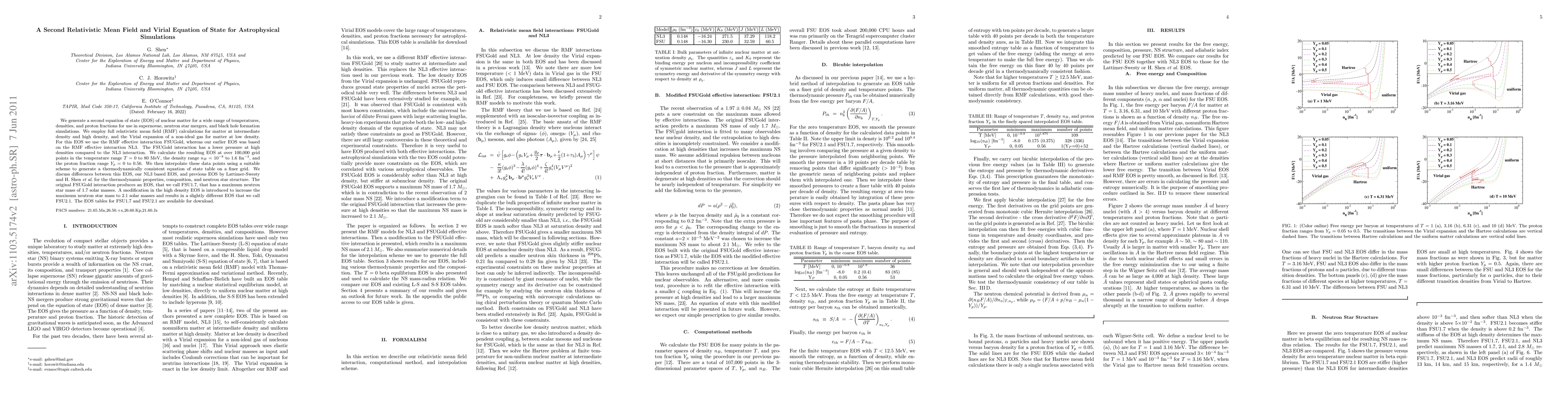 This paper presents a new relativistic mean field (RMF) equation of state (EOS) for nuclear matter, employing the FSUGold interaction for simulations of astrophysical phenomena like supernovae and neutron star mergers. The EOS, FSU1.7, allows for neutron stars up to 1.7 solar masses, while a modified version, FSU2.1, supports masses up to 2.1 solar masses.
