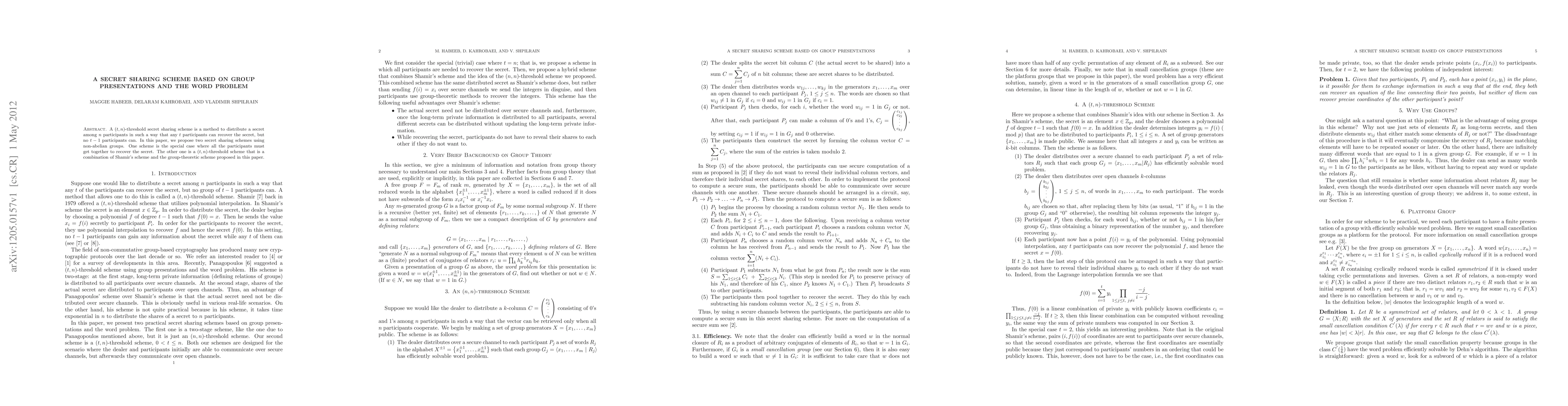 This paper proposes two secret sharing schemes based on non-abelian groups: one where all participants must collaborate to recover the secret, and another (t,n)-threshold scheme combining Shamir's scheme with a new group-theoretic approach.