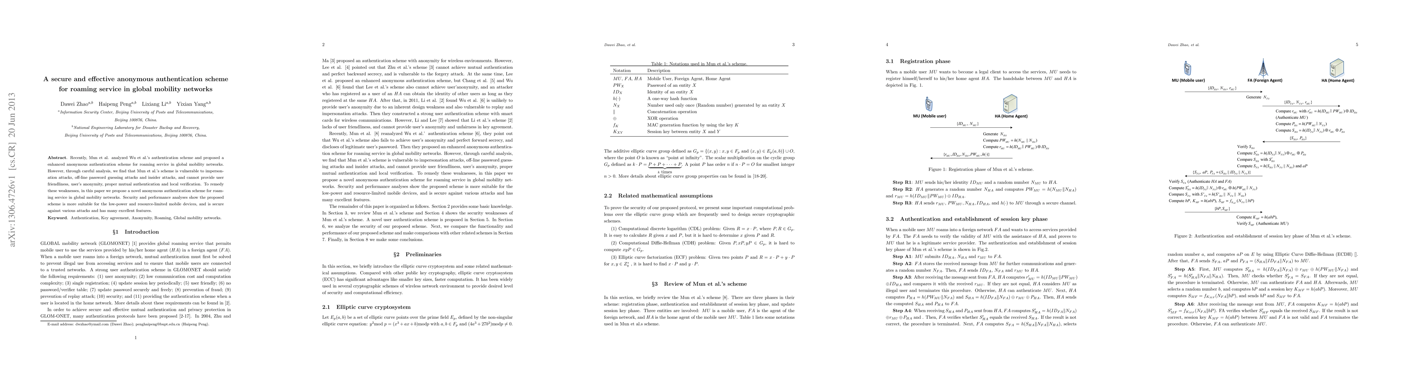 This paper proposes a novel anonymous authentication scheme to address vulnerabilities in existing schemes for roaming services in global mobility networks, including resistance to impersonation, offline password guessing, and insider attacks, while enhancing user friendliness, anonymity, mutual authentication, and local verification. Security and performance analyses demonstrate its suitability for low-power mobile devices and its robustness against various attacks.