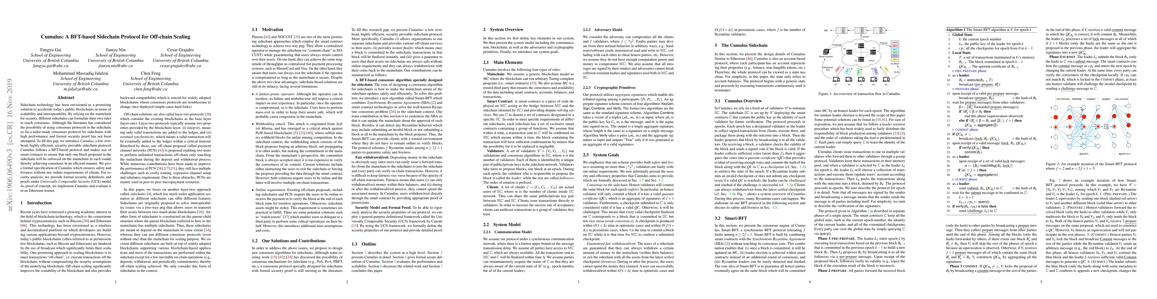 This paper introduces Cumulus, a novel consensus protocol for sidechains that aims to enhance scalability and interoperability while ensuring security through formal proofs. Cumulus leverages smart contracts to achieve consensus efficiently and provides a formal specification ensuring safety and liveness without client online requirements.