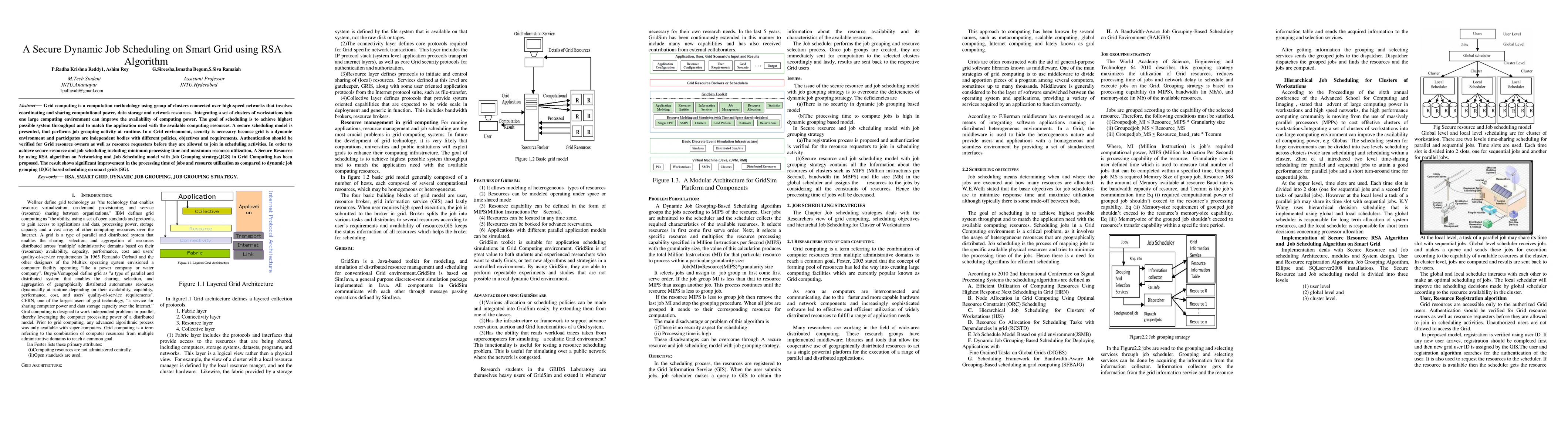 This paper proposes a secure dynamic job scheduling model for smart grids using the RSA algorithm to enhance security and efficiency. It introduces a job grouping strategy that significantly improves processing time and resource utilization compared to traditional dynamic job grouping methods.