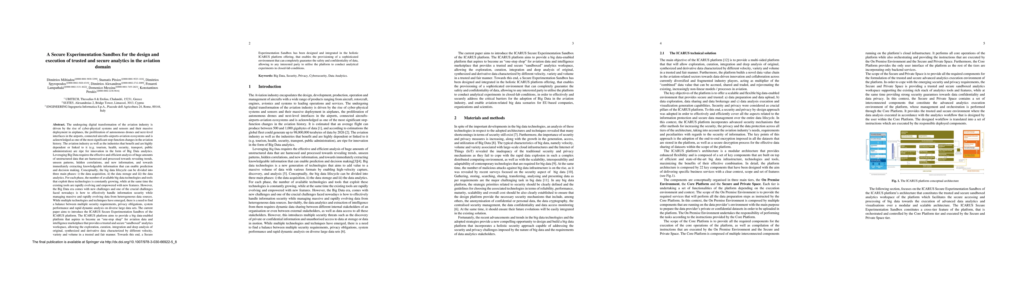 This paper introduces the ICARUS Secure Experimentation Sandbox, a component of the ICARUS platform designed to provide a trusted and secure environment for conducting big data analytics in the aviation domain. The sandbox aims to balance security, privacy, performance, and dynamic analysis while managing large, evolving datasets from diverse sources.