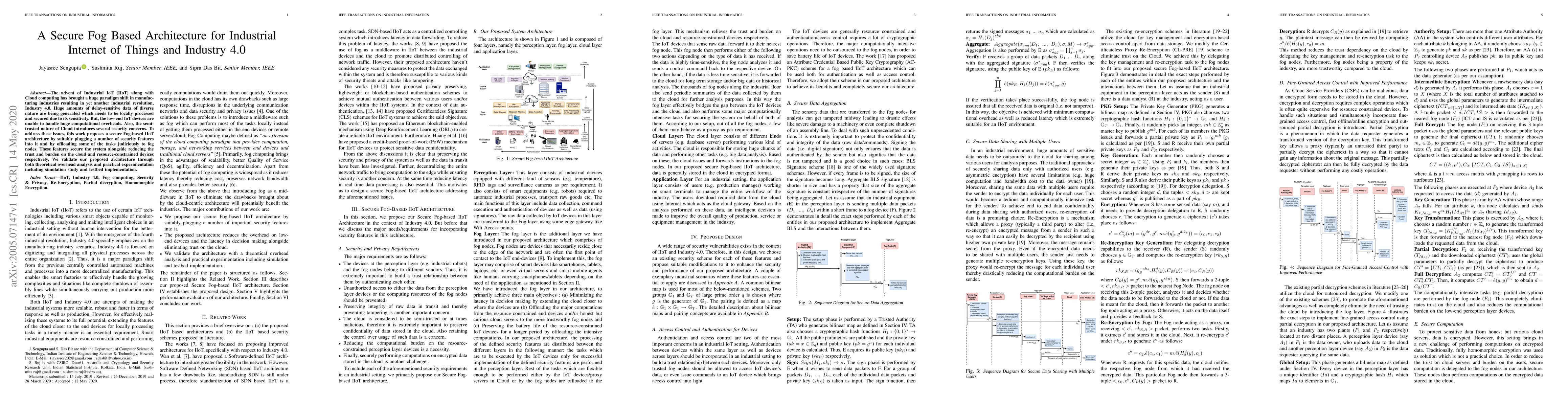This paper proposes a secure fog-based IIoT architecture to address security concerns in Industry 4.0, reducing reliance on cloud computing and minimizing computational overheads for low-end IoT devices.