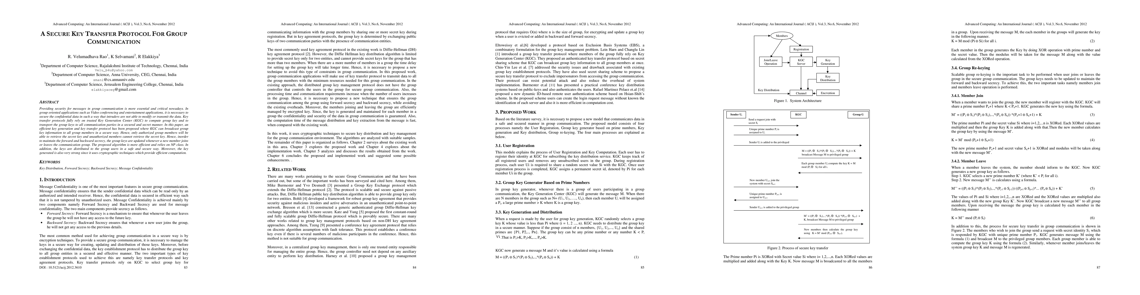 This paper proposes a secure key transfer protocol for group communication, ensuring that only authorized members can retrieve the secret group key. The protocol updates keys for forward and backward secrecy upon member changes and utilizes cryptographic techniques for efficient and strong key generation and distribution.