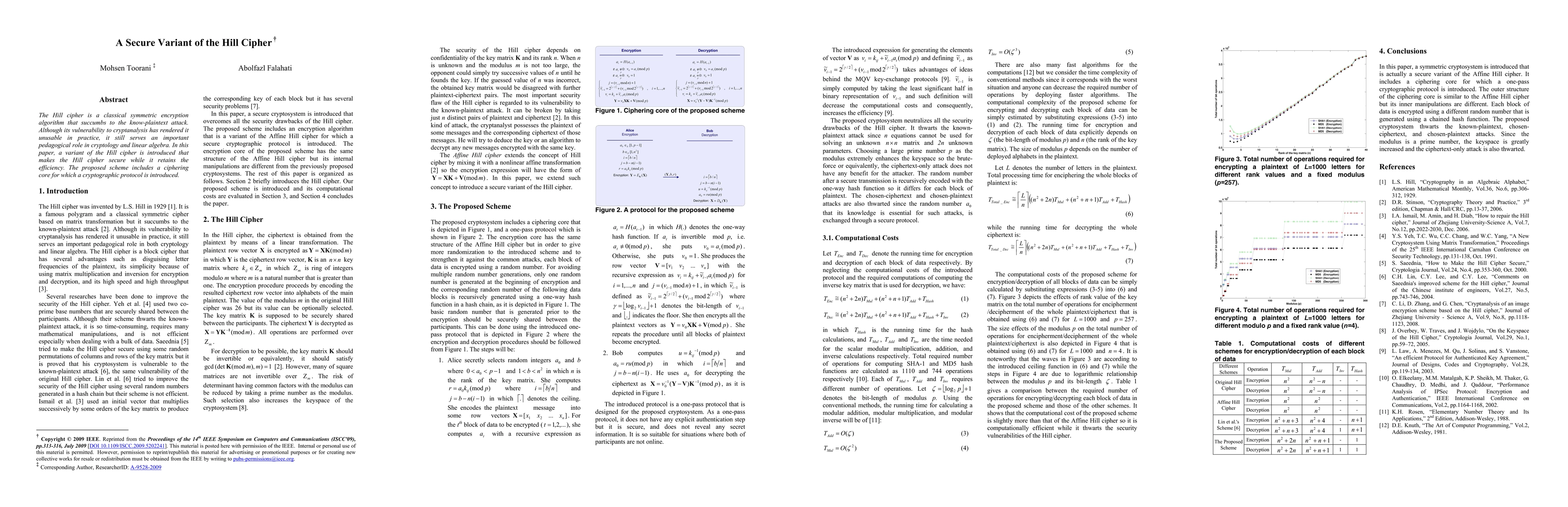 This paper introduces a secure variant of the Hill cipher, enhancing its resistance to know-plaintext attacks while maintaining its efficiency. The proposed scheme includes a new ciphering core and a cryptographic protocol to achieve this security improvement.