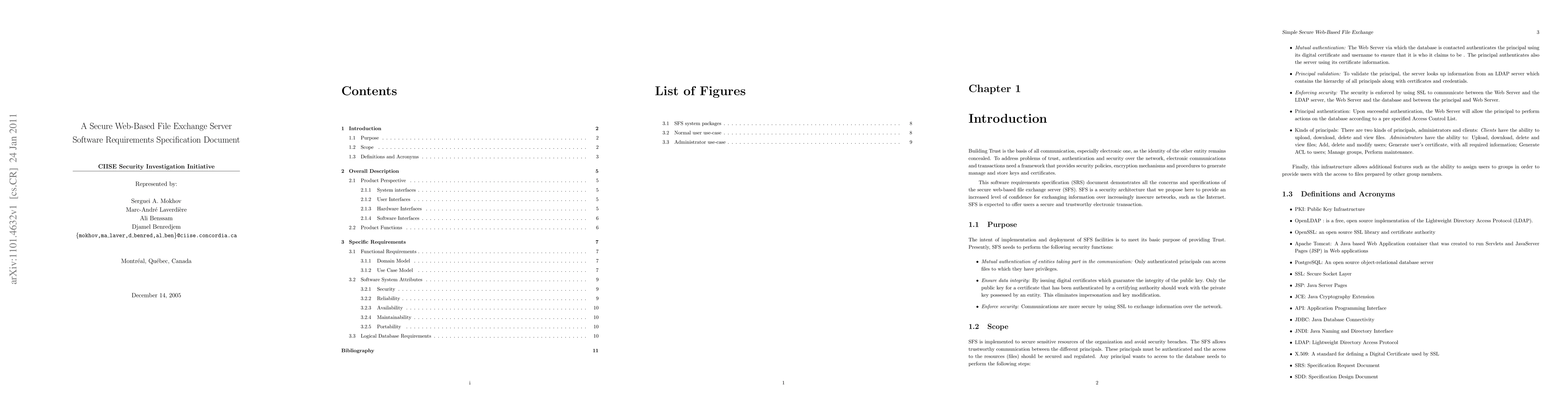 This document outlines the software requirements for a secure web-based file exchange server prototype, emphasizing mutual authentication using PKI-based certificates and leveraging LDAP for credential management to ensure high trust levels among users and servers.