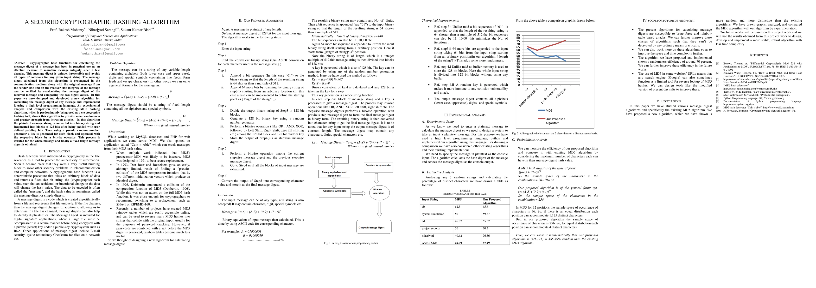 This paper introduces a new cryptographic hashing algorithm designed to enhance message integrity through a unique, irreversible message digest. The algorithm uses a pseudo-random key generator and bitwise operations on padded binary message blocks, showing improved randomness and stronger resistance against intrusion compared to the existing MD5 hashing algorithm.
