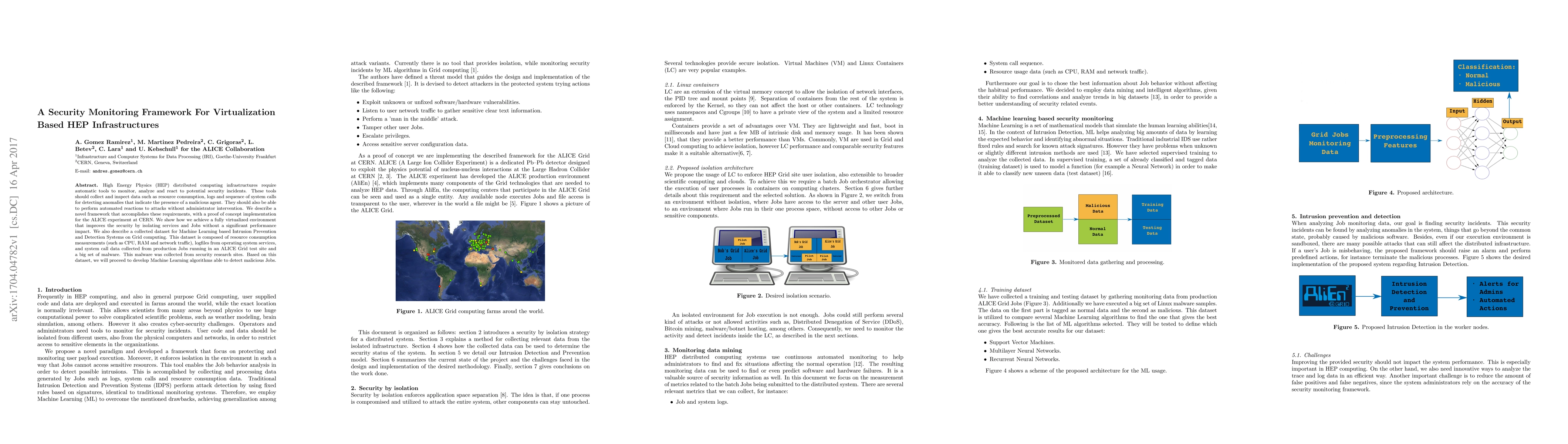 Researchers developed a security monitoring framework for virtualization-based High Energy Physics infrastructures, utilizing machine learning algorithms to detect malicious activities without administrator intervention.