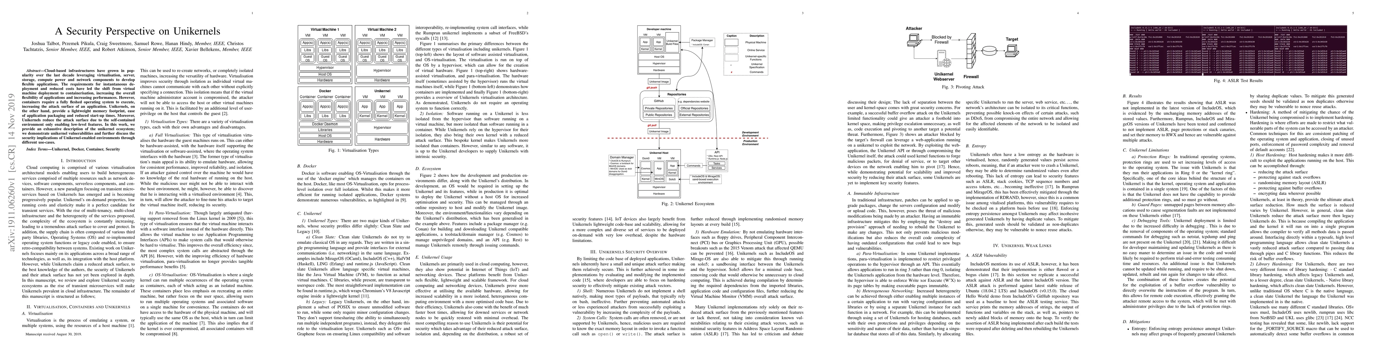 Cloud-based infrastructures have grown in popularity over the last decade leveraging virtualisation, server, storage, compute power and network components to develop flexible applications. The requirements for instantaneous deployment and reduced costs have led the shift from virtual machine deployment to containerisation, increasing the overall flexibility of applications and increasing performances. However, containers require a fully fleshed operating system to execute, increasing the attack surface of an application. Unikernels, on the other hand, provide a lightweight memory footprint, ease of application packaging and reduced start-up times. Moreover, Unikernels reduce the attack surface due to the self-contained environment only enabling low-level features. In this work, we provide an exhaustive description of the unikernel ecosystem; we demonstrate unikernel vulnerabilities and further discuss the security implications of Unikernel-enabled environments through different use-cases.