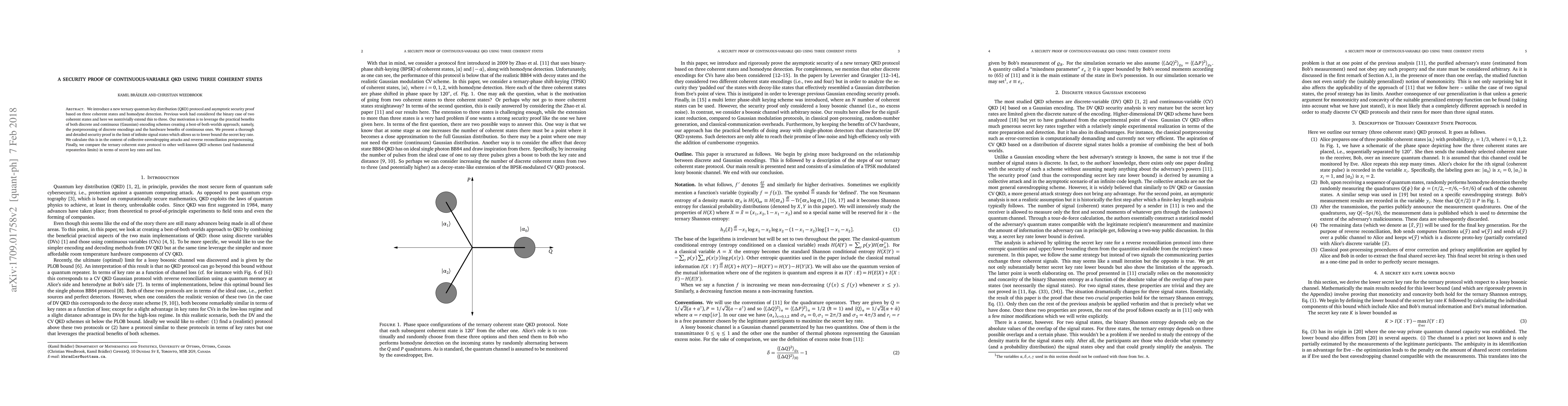 We introduce a ternary quantum key distribution (QKD) protocol and asymptotic security proof based on three coherent states and homodyne detection. Previous work had considered the binary case of two coherent states and here we nontrivially extend this to three. Our motivation is to leverage the practical benefits of both discrete and continuous (Gaussian) encoding schemes creating a best-of-both-worlds approach; namely, the postprocessing of discrete encodings and the hardware benefits of continuous ones. We present a thorough and detailed security proof in the limit of infinite signal states which allows us to lower bound the secret key rate. We calculate this is in the context of collective eavesdropping attacks and reverse reconciliation postprocessing. Finally, we compare the ternary coherent state protocol to other well-known QKD schemes (and fundamental repeaterless limits) in terms of secret key rates and loss.