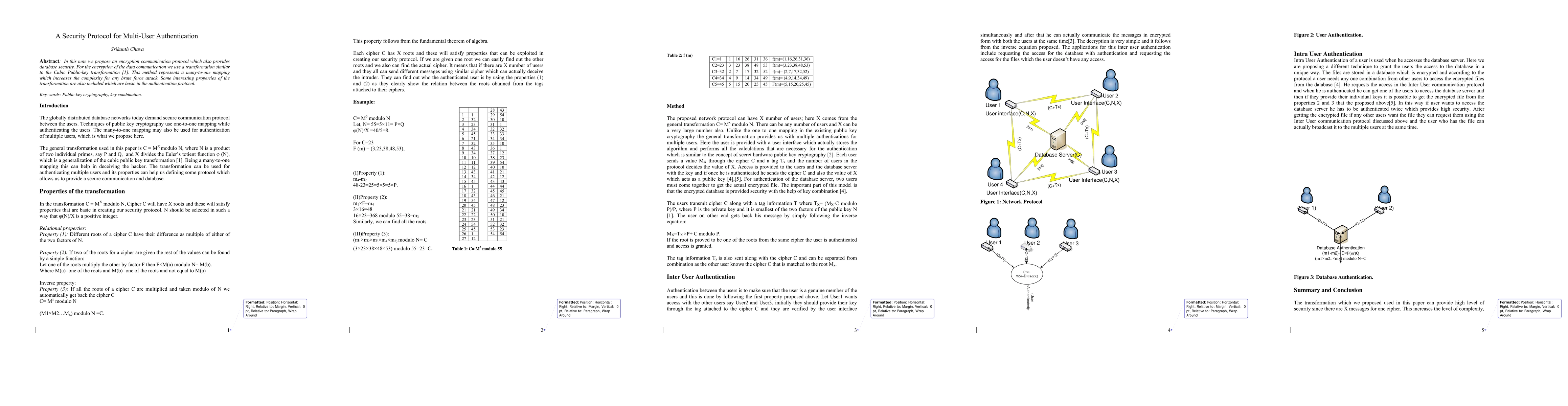 In this note we propose an encryption communication protocol which also provides database security. For the encryption of the data communication we use a transformation similar to the Cubic Public-key transformation. This method represents a many-to-one mapping which increases the complexity for any brute force attack. Some interesting properties of the transformation are also included which are basic in the authentication protocol.