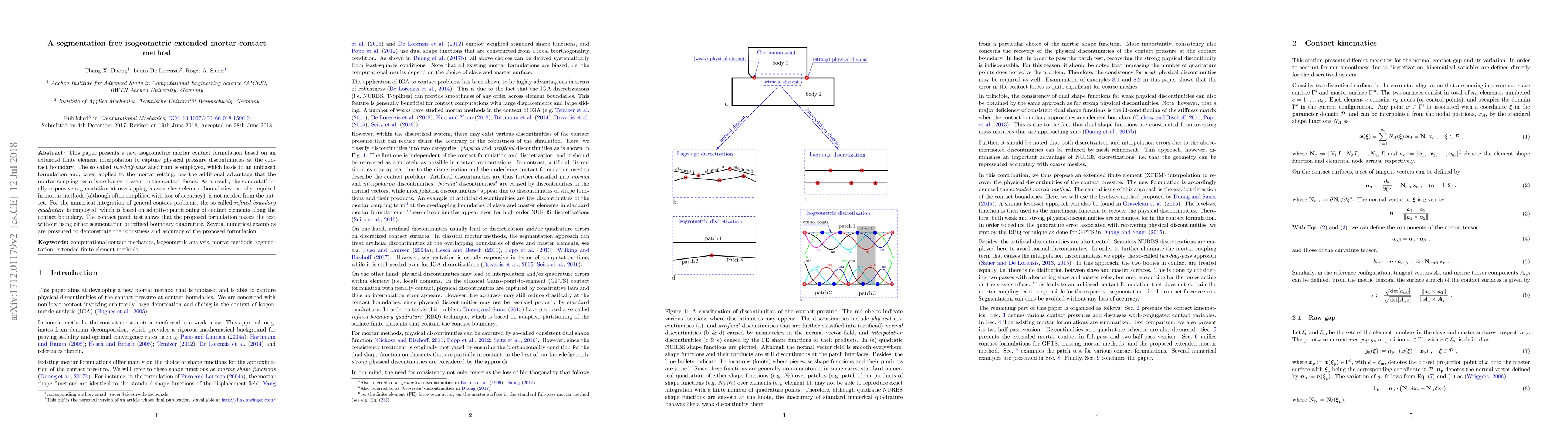 The development of a new computational contact formulation based on surface potentials, which provides improved accuracy and efficiency in solving contact problems.