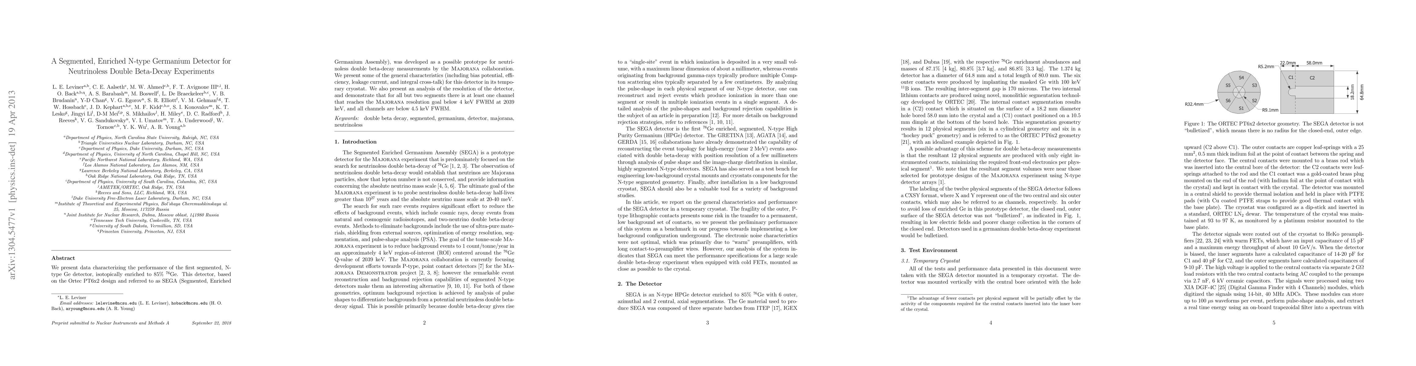 We present data characterizing the performance of the first segmented, N-type Ge detector, isotopically enriched to 85% $^{76}$Ge. This detector, based on the Ortec PT6x2 design and referred to as SEGA (Segmented, Enriched Germanium Assembly), was developed as a possible prototype for neutrinoless double beta-decay measurements by the {\sc Majorana} collaboration. We present some of the general characteristics (including bias potential, efficiency, leakage current, and integral cross-talk) for this detector in its temporary cryostat. We also present an analysis of the resolution of the detector, and demonstrate that for all but two segments there is at least one channel that reaches the {\sc Majorana} resolution goal below 4 keV FWHM at 2039 keV, and all channels are below 4.5 keV FWHM.