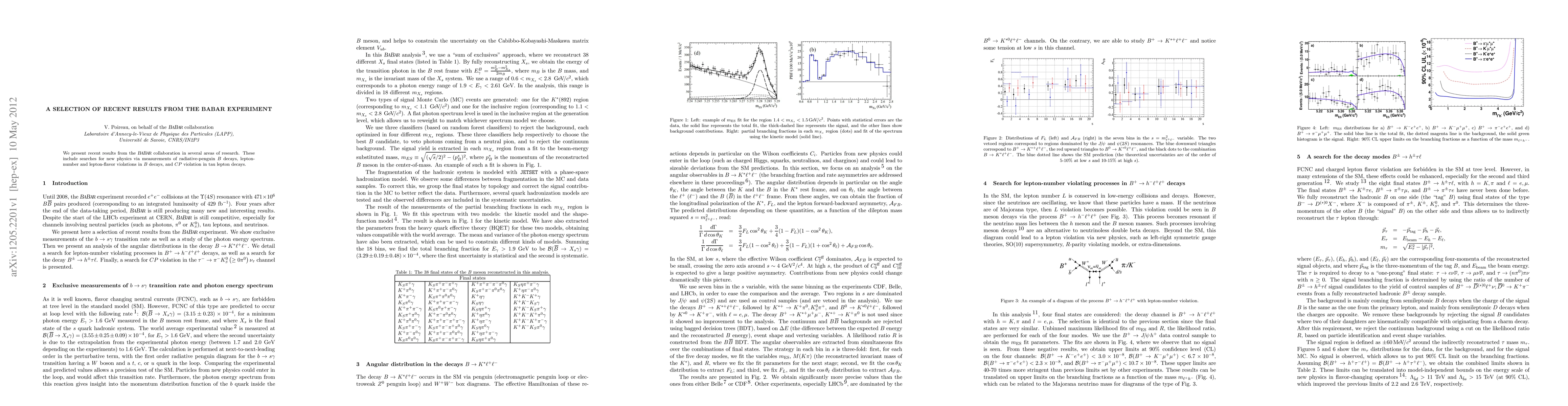 We present recent results from the BaBar collaboration in several areas of research. These include searches for new physics via measurements of radiative-penguin B decays, lepton-number and lepton-flavor violations in B decays, and CP violation in tau lepton decays.