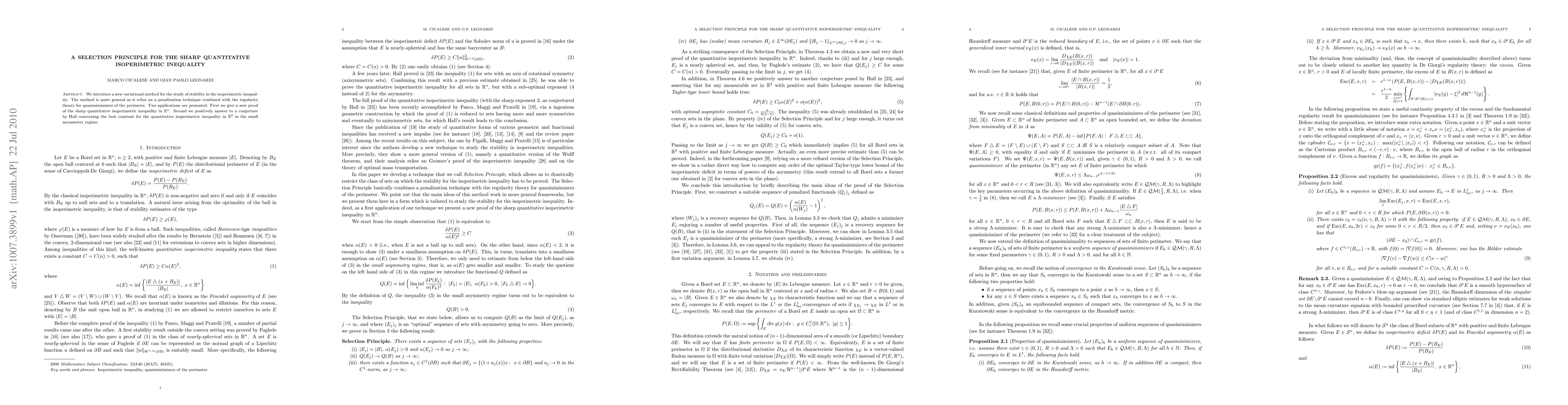 We introduce a new variational method for the study of stability in the isoperimetric inequality. The method is quite general as it relies on a penalization technique combined with the regularity theory for quasiminimizers of the perimeter. Two applications are presented. First we give a new proof of the sharp quantitative isoperimetric inequality in $R^n$. Second we positively answer to a conjecture by Hall concerning the best constant for the quantitative isoperimetric inequality in $R^2$ in the small asymmetry regime.