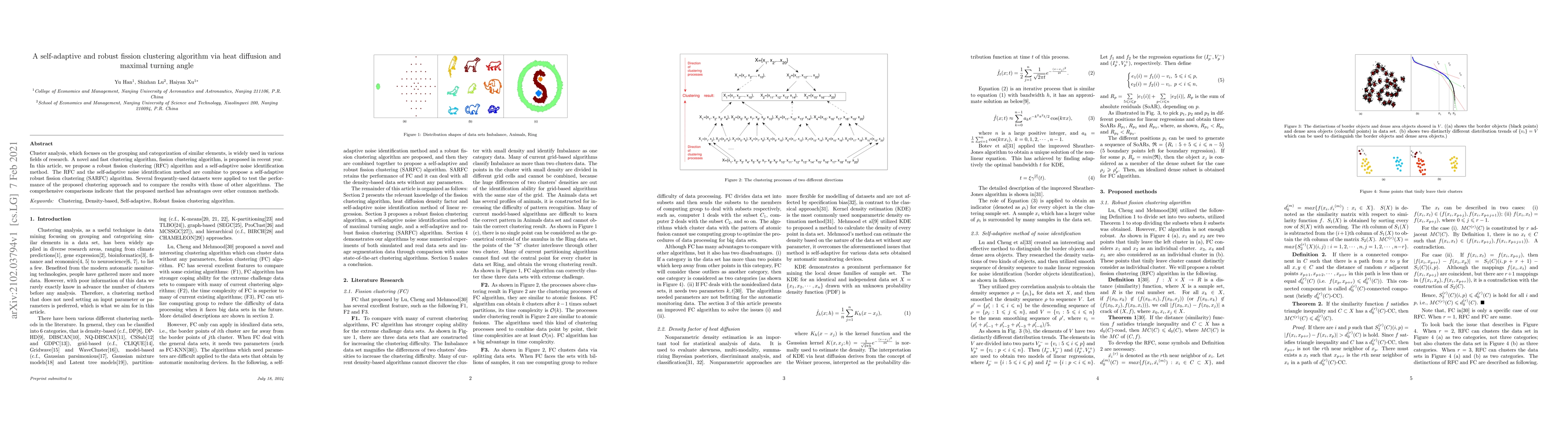 Cluster analysis, which focuses on the grouping and categorization of similar elements, is widely used in various fields of research. A novel and fast clustering algorithm, fission clustering algorithm, is proposed in recent year. In this article, we propose a robust fission clustering (RFC) algorithm and a self-adaptive noise identification method. The RFC and the self-adaptive noise identification method are combine to propose a self-adaptive robust fission clustering (SARFC) algorithm. Several frequently-used datasets were applied to test the performance of the proposed clustering approach and to compare the results with those of other algorithms. The comprehensive comparisons indicate that the proposed method has advantages over other common methods.