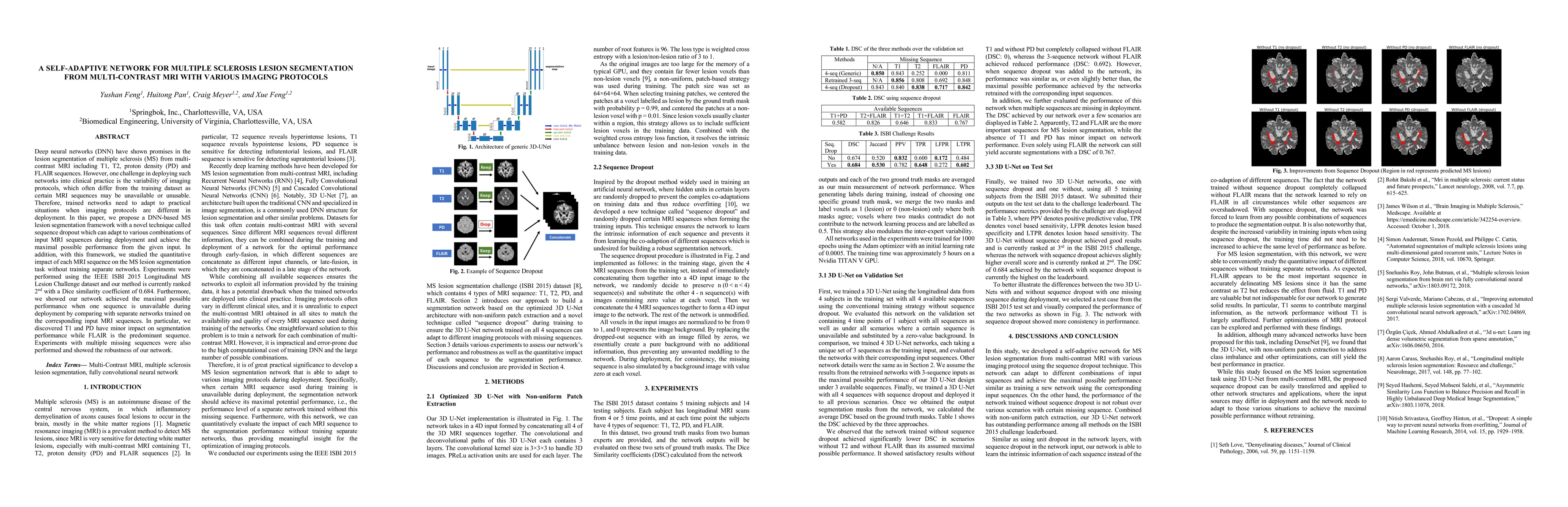 This paper proposes a self-adaptive deep neural network for segmenting multiple sclerosis lesions from multi-contrast MRI, employing a technique called sequence dropout to adapt to varying imaging protocols. The method achieves high performance and robustness, ranking 2nd in the IEEE ISBI 2015 challenge, demonstrating the minimal impact of T1 and PD sequences while highlighting FLAIR's importance.