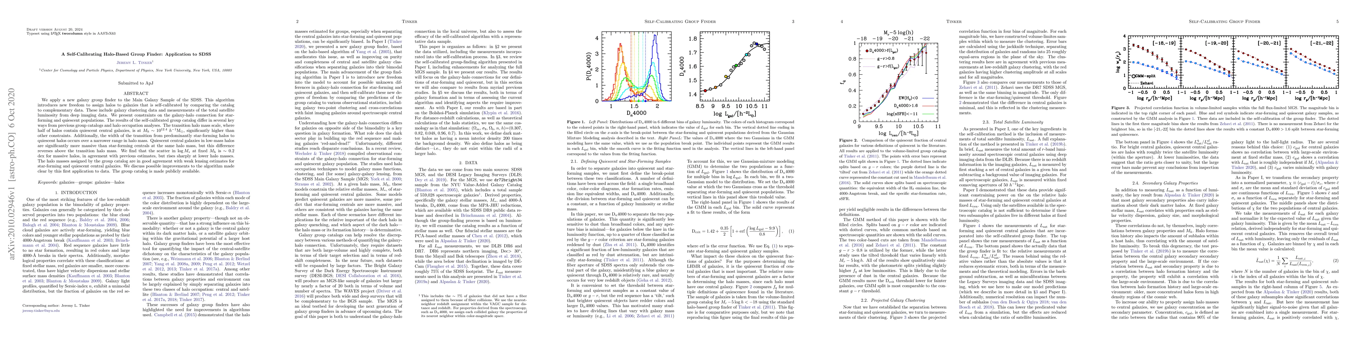 This paper introduces a self-calibrating halo-based group finder applied to the SDSS Main Galaxy Sample, revealing a transition halo mass scale of M_h~10^12.4 Msol/h for quiescent galaxies, significantly higher than previous estimates. The catalog shows that the scatter in galaxy mass at fixed halo mass increases sharply at lower halo masses.