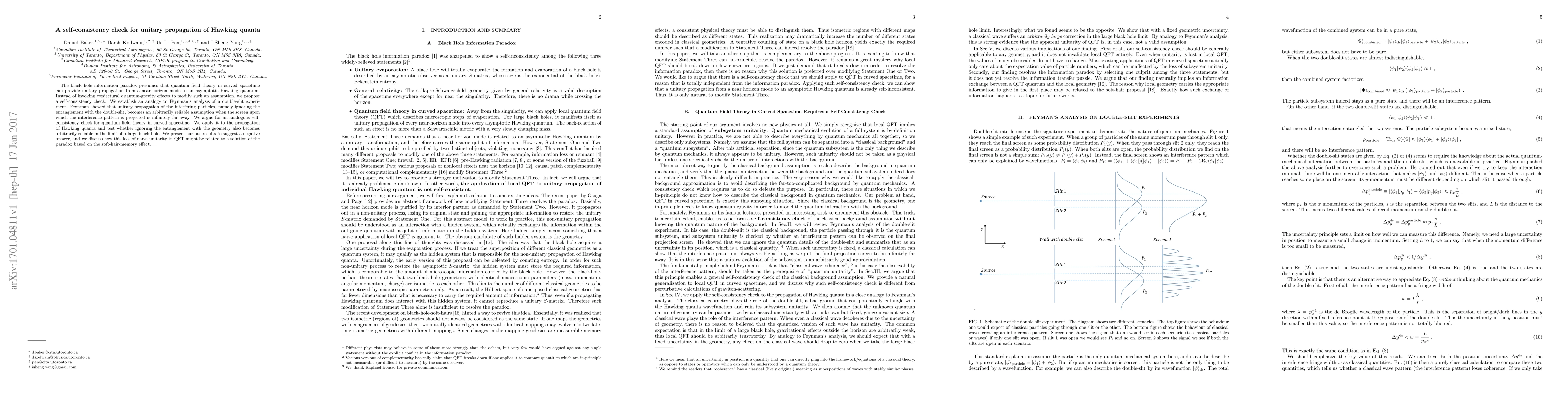 The black hole information paradox presumes that quantum field theory in curved spacetime can provide unitary propagation from a near-horizon mode to an asymptotic Hawking quantum. Instead of invoking conjectural quantum gravity effects to modify such an assumption, we propose a self-consistency check. We establish an analogy to Feynman's analysis of a double-slit experiment. Feynman showed that unitary propagation of the interfering particles, namely ignoring the entanglement with the double-slit, becomes an arbitrarily reliable assumption when the screen upon which the interference pattern is projected is infinitely far away. We argue for an analogous self-consistency check for quantum field theory in curved spacetime. We apply it to the propagation of Hawking quanta and test whether ignoring the entanglement with the geometry also becomes arbitrarily reliable in the limit of a large black hole. We present curious results to suggest a negative answer, and we discuss how this loss of naive unitarity in QFT might be related to a solution of the paradox based on the soft-hair-memory effect.