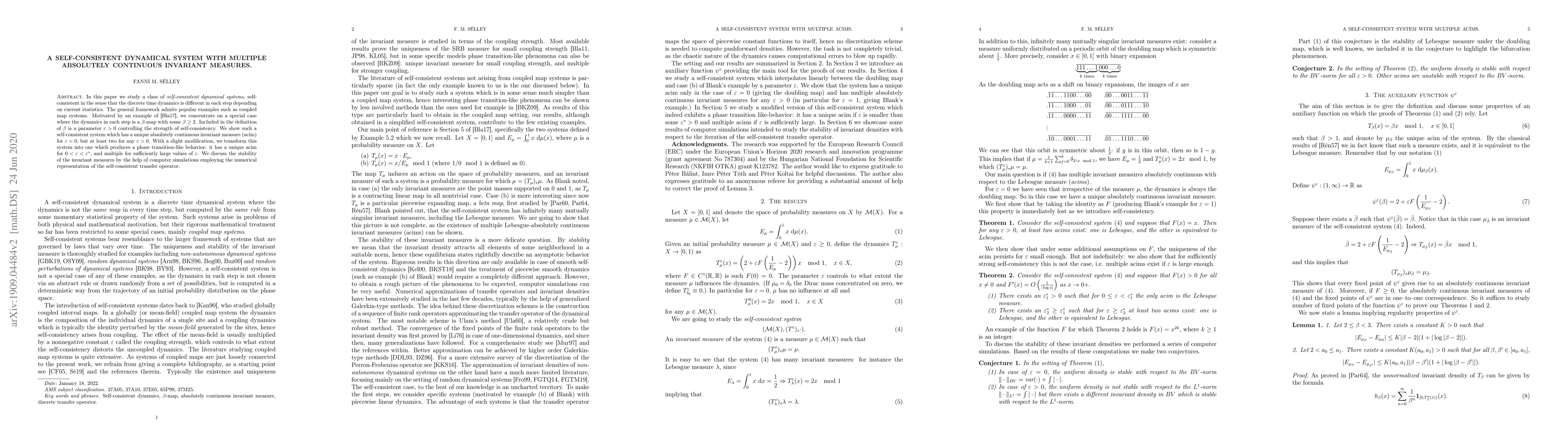 This paper explores a self-consistent dynamical system where the dynamics vary based on current statistics, exemplified by a $\beta$-map. It reveals a phase transition-like behavior, showing a unique absolutely continuous invariant measure for small parameters but multiple measures for larger values. Stability of these measures is analyzed via numerical simulations.
