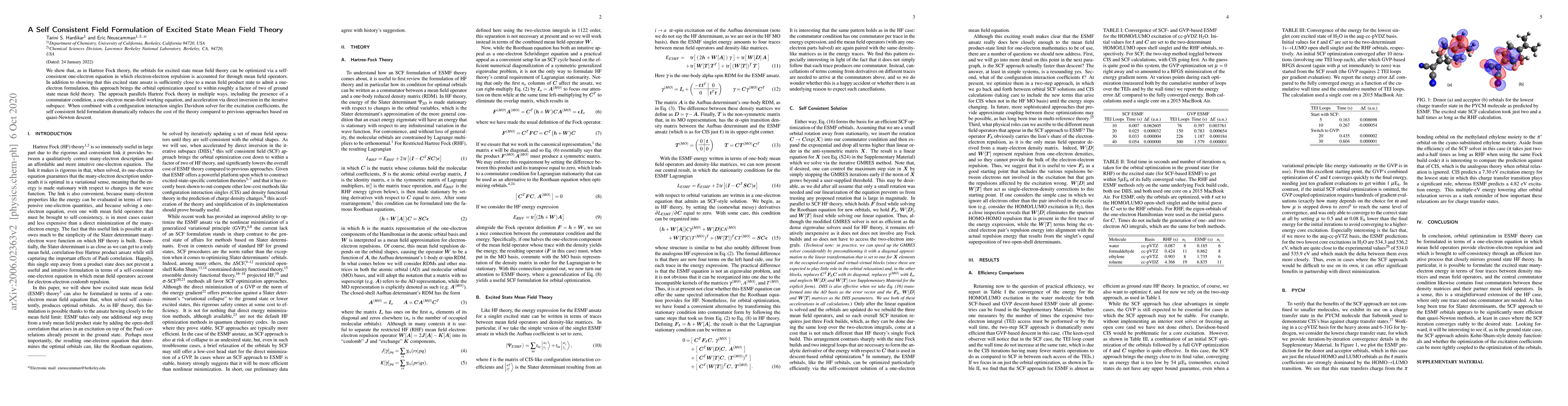 We show that, as in Hartree Fock theory, the orbitals for excited state mean field theory can be optimized via a self-consistent one-electron equation in which electron-electron repulsion is accounted for through mean field operators. In addition to showing that this excited state ansatz is sufficiently close to a mean field product state to admit a one-electron formulation, this approach brings the orbital optimization speed to within roughly a factor of two of ground state mean field theory. The approach parallels Hartree Fock theory in multiple ways, including the presence of a commutator condition, a one-electron mean-field working equation, and acceleration via direct inversion in the iterative subspace. When combined with a configuration interaction singles Davidson solver for the excitation coefficients, the self consistent field formulation dramatically reduces the cost of the theory compared to previous approaches based on quasi-Newton descent.