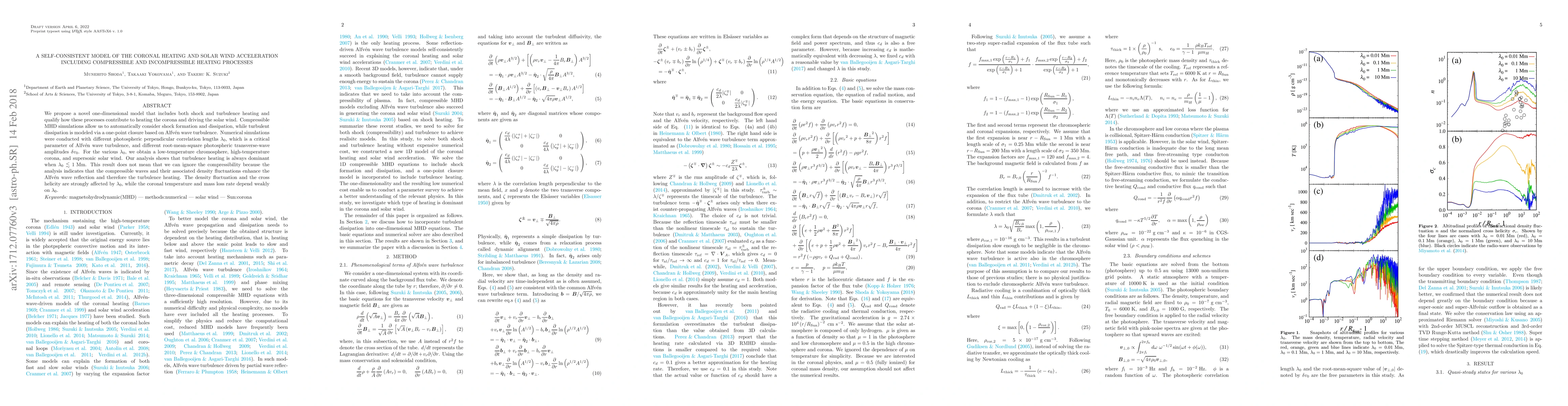 This paper proposes a one-dimensional model incorporating both shock and turbulence heating processes to explain coronal heating and solar wind acceleration. The study finds that turbulence heating dominates when the Alfvén wave turbulence correlation length is small, while compressible waves enhance turbulence heating through density fluctuations.