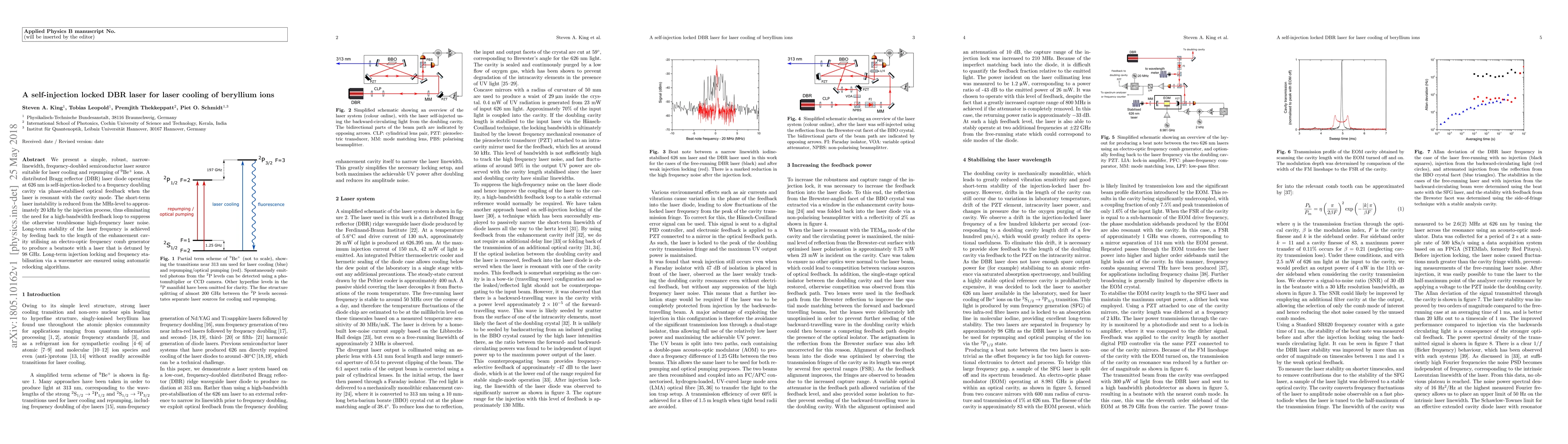 This paper details a robust, narrow-linewidth laser source for cooling $^9$Be$^+$ ions, utilizing a self-injection-locked DBR laser diode at 626 nm. The system reduces short-term instability and achieves long-term frequency stability through feedback mechanisms and an electro-optic frequency comb.