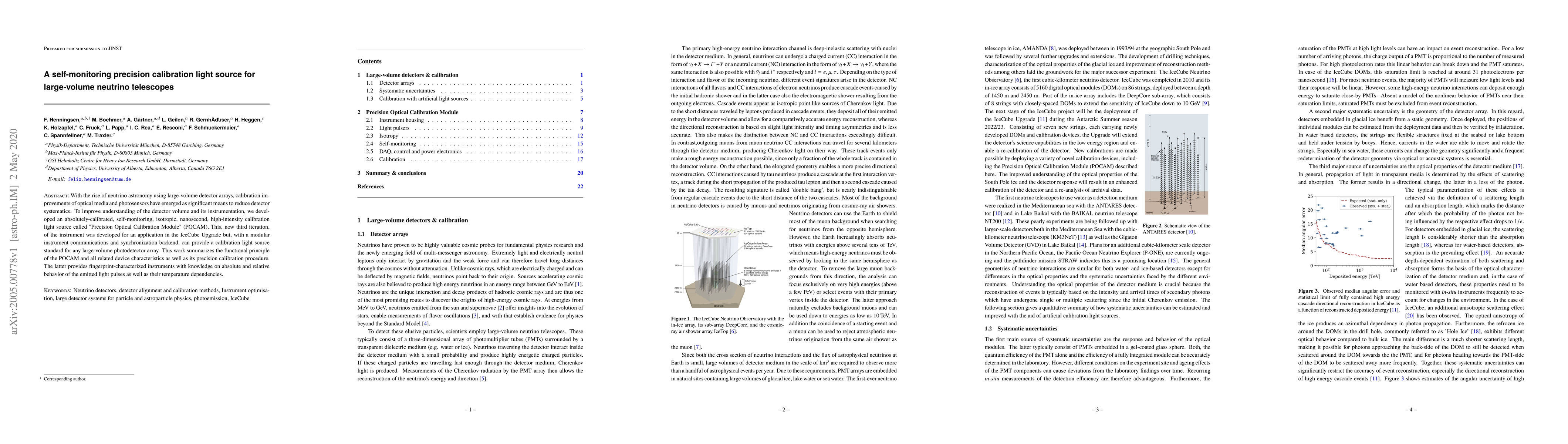 Researchers developed a self-monitoring calibration light source for large-volume neutrino telescopes to improve detector systematics and understanding of the detector volume.