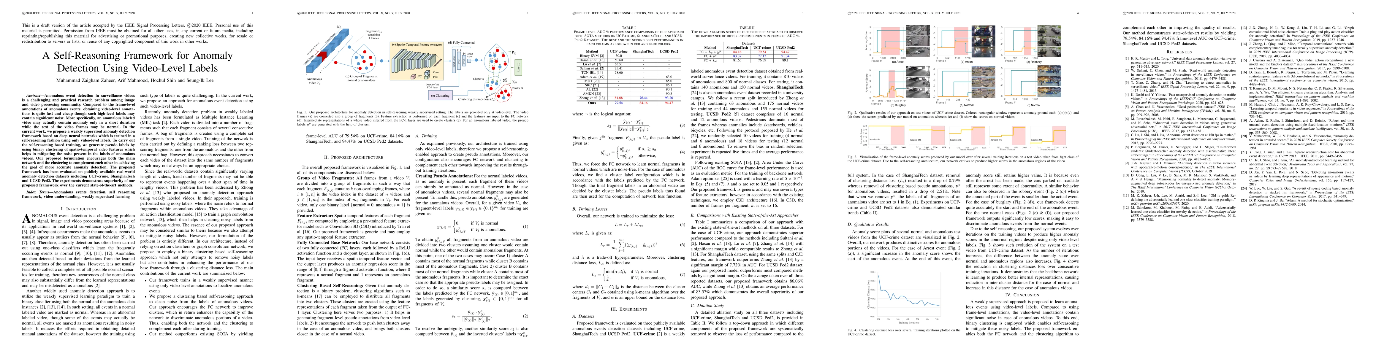 This paper proposes a self-reasoning framework for anomaly detection using only video-level labels, generating pseudo labels through binary clustering to mitigate noise and improve detection accuracy. The framework outperforms existing methods on multiple datasets.