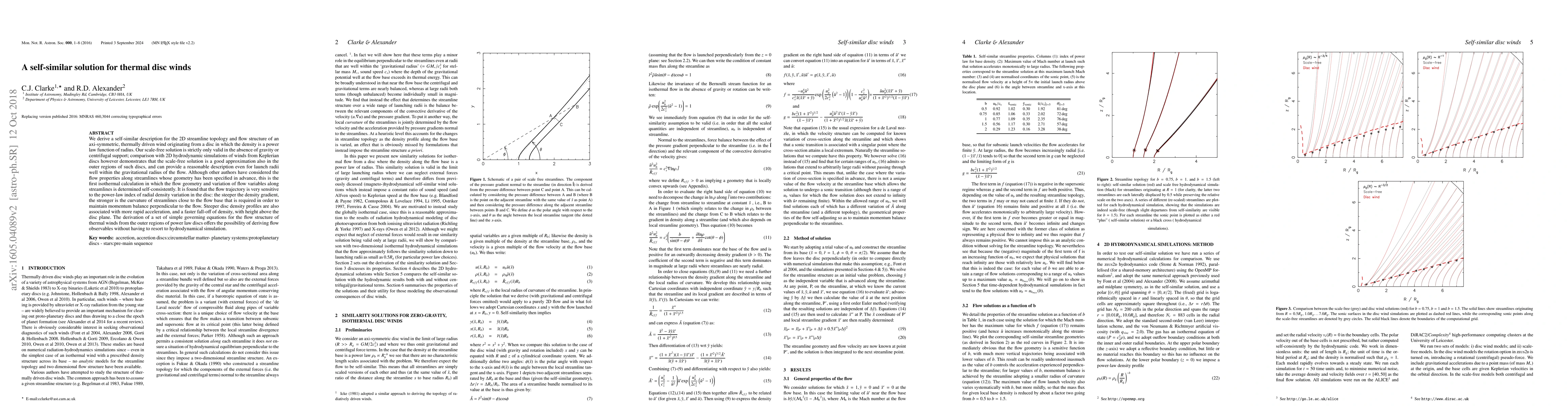We derive a self-similar description for the 2D streamline topology and flow structure of an axi-symmetric, thermally driven wind originating from a disc in which the density is a power law function of radius. Our scale-free solution is strictly only valid in the absence of gravity or centrifugal support; comparison with 2D hydrodynamic simulations of winds from Keplerian discs however demonstrates that the scale-free solution is a good approximation also in the outer regions of such discs, and can provide a reasonable description even for launch radii well within the gravitational radius of the flow. Although other authors have considered the flow properties along streamlines whose geometry has been specified in advance, this is the first isothermal calculation in which the flow geometry and variation of flow variables along streamlines is determined self-consistently. It is found that the flow trajectory is very sensitive to the power-law index of radial density variation in the disc: the steeper the density gradient, the stronger is the curvature of streamlines close to the flow base that is required in order to maintain momentum balance perpendicular to the flow. Steeper disc density profiles are also associated with more rapid acceleration, and a faster fall-off of density, with height above the disc plane. The derivation of a set of simple governing equations for the flow structure of thermal winds from the outer regions of power law discs offers the possibility of deriving flow observables without having to resort to hydrodynamical simulation.
