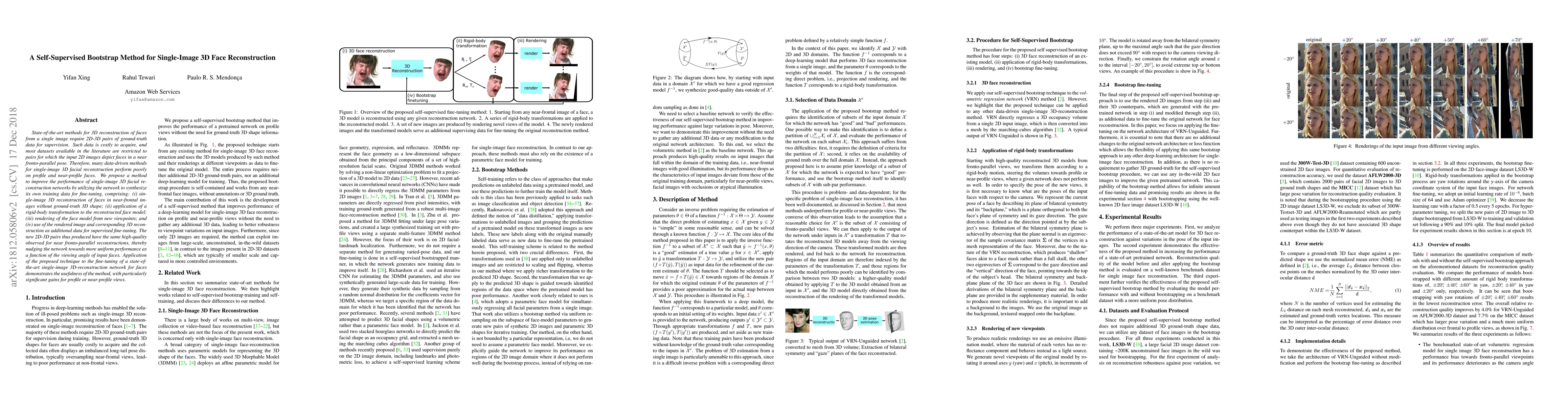 This paper proposes a self-supervised bootstrap method to enhance single-image 3D face reconstruction by synthesizing training data through network-generated 2D-3D pairs, leading to improved performance, especially for profile and near-profile faces. The method involves reconstructing near-frontal faces, transforming and rendering them, and using these synthetic pairs for fine-tuning.