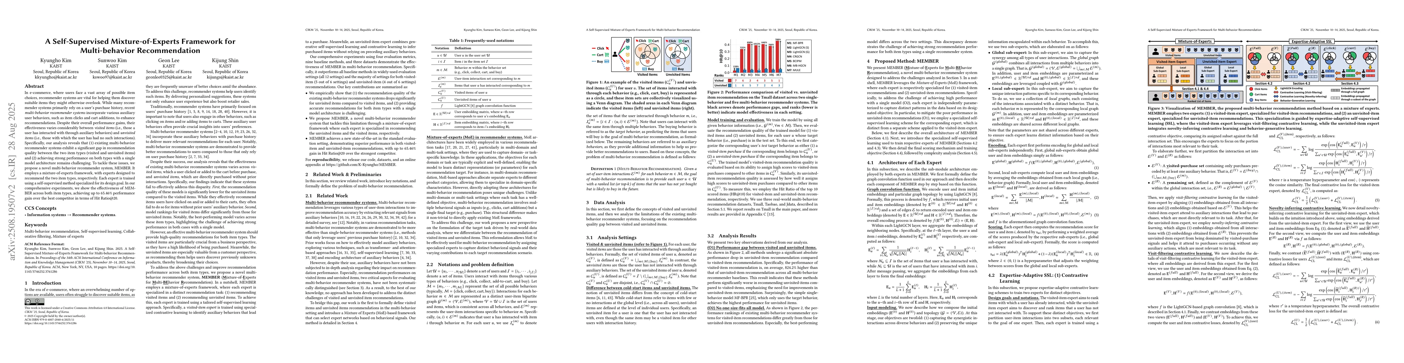 In e-commerce, where users face a vast array of possible item choices, recommender systems are vital for helping them discover suitable items they might otherwise overlook. While many recommender systems primarily rely on a user's purchase history, recent multi-behavior recommender systems incorporate various auxiliary user behaviors, such as item clicks and cart additions, to enhance recommendations. Despite their overall performance gains, their effectiveness varies considerably between visited items (i.e., those a user has interacted with through auxiliary behaviors) and unvisited items (i.e., those with which the user has had no such interactions). Specifically, our analysis reveals that (1) existing multi-behavior recommender systems exhibit a significant gap in recommendation quality between the two item types (visited and unvisited items) and (2) achieving strong performance on both types with a single model architecture remains challenging. To tackle these issues, we propose a novel multi-behavior recommender system, MEMBER. It employs a mixture-of-experts framework, with experts designed to recommend the two item types, respectively. Each expert is trained using a self-supervised method specialized for its design goal. In our comprehensive experiments, we show the effectiveness of MEMBER across both item types, achieving up to 65.46% performance gain over the best competitor in terms of Hit Ratio@20.