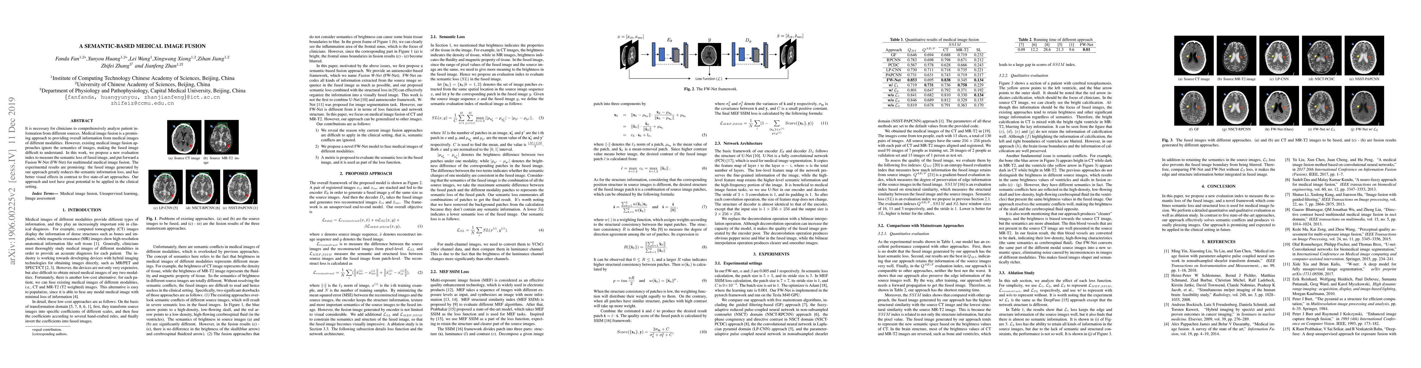 This paper proposes a new semantic-based medical image fusion approach, the Fusion W-Net (FW-Net), which significantly reduces semantic information loss compared to existing methods. The results show improved visual effects and potential clinical application.