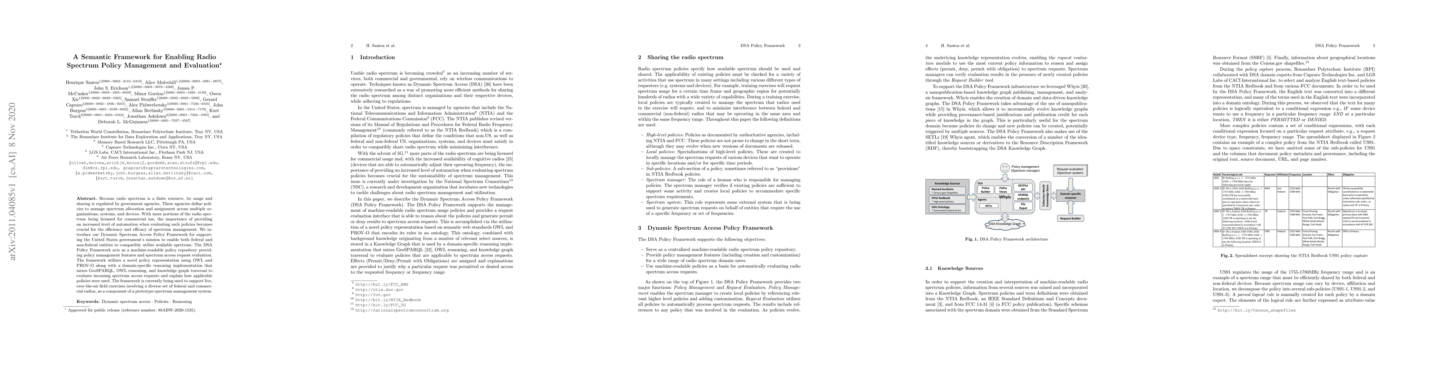 Because radio spectrum is a finite resource, its usage and sharing is regulated by government agencies. These agencies define policies to manage spectrum allocation and assignment across multiple organizations, systems, and devices. With more portions of the radio spectrum being licensed for commercial use, the importance of providing an increased level of automation when evaluating such policies becomes crucial for the efficiency and efficacy of spectrum management. We introduce our Dynamic Spectrum Access Policy Framework for supporting the United States government's mission to enable both federal and non-federal entities to compatibly utilize available spectrum. The DSA Policy Framework acts as a machine-readable policy repository providing policy management features and spectrum access request evaluation. The framework utilizes a novel policy representation using OWL and PROV-O along with a domain-specific reasoning implementation that mixes GeoSPARQL, OWL reasoning, and knowledge graph traversal to evaluate incoming spectrum access requests and explain how applicable policies were used. The framework is currently being used to support live, over-the-air field exercises involving a diverse set of federal and commercial radios, as a component of a prototype spectrum management system.