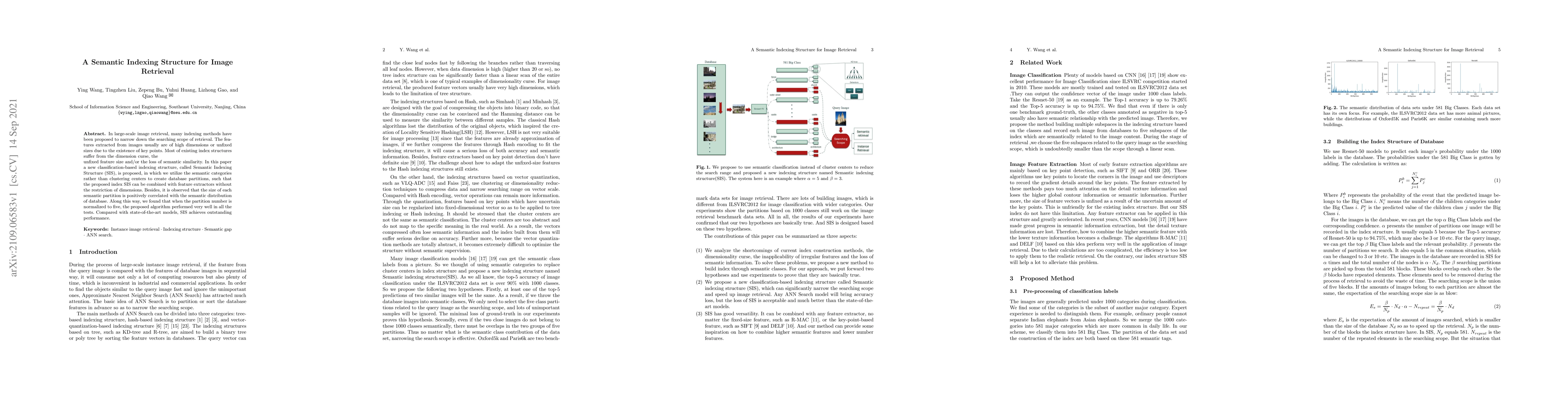 In large-scale image retrieval, many indexing methods have been proposed to narrow down the searching scope of retrieval. The features extracted from images usually are of high dimensions or unfixed sizes due to the existence of key points. Most of existing index structures suffer from the dimension curse, the unfixed feature size and/or the loss of semantic similarity. In this paper a new classification-based indexing structure, called Semantic Indexing Structure (SIS), is proposed, in which we utilize the semantic categories rather than clustering centers to create database partitions, such that the proposed index SIS can be combined with feature extractors without the restriction of dimensions. Besides, it is observed that the size of each semantic partition is positively correlated with the semantic distribution of database. Along this way, we found that when the partition number is normalized to five, the proposed algorithm performed very well in all the tests. Compared with state-of-the-art models, SIS achieves outstanding performance.