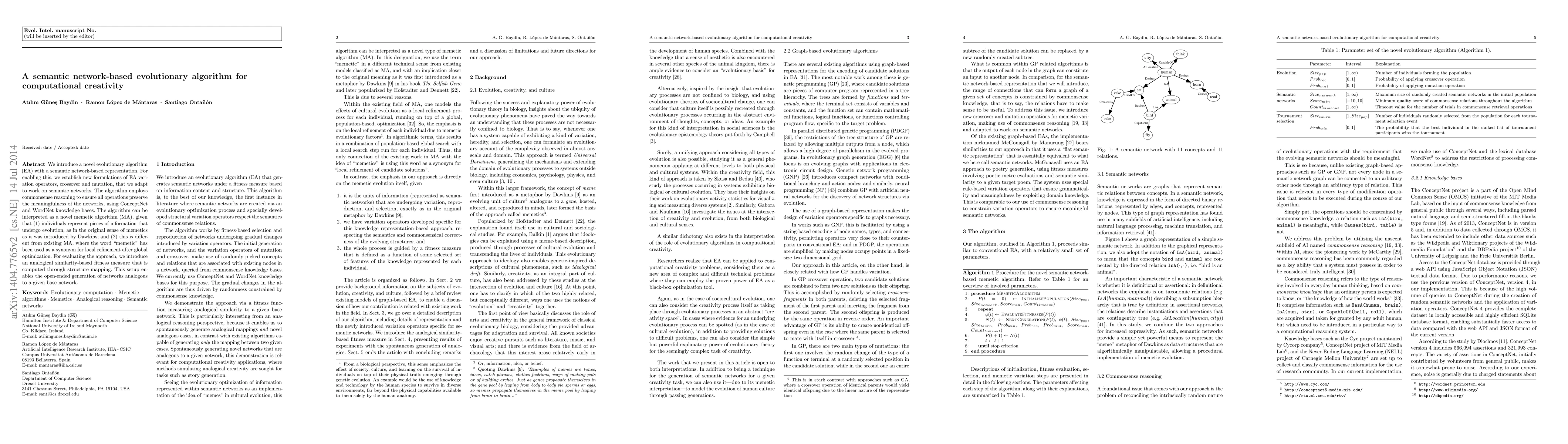 This paper proposes a novel evolutionary algorithm that utilizes semantic networks for computational creativity, adapting crossover and mutation to maintain meaningfulness using ConceptNet and WordNet. The algorithm is evaluated using an analogical similarity-based fitness measure, enabling the generation of novel, meaningful networks.