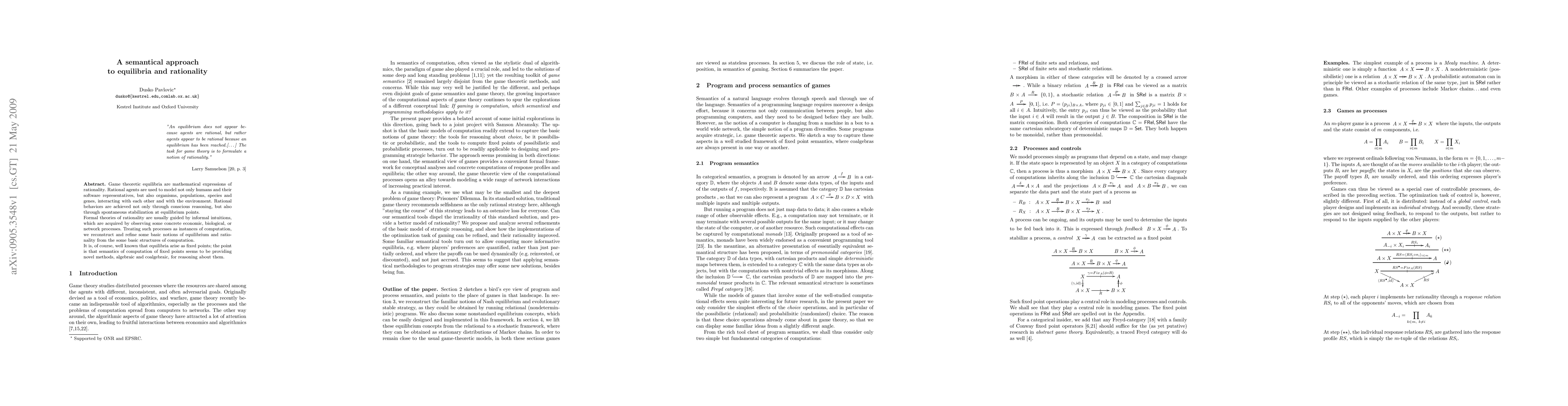 This paper proposes a semantical approach to understanding game theory equilibria and rationality, using computation fixed points. It suggests novel algebraic and coalgebraic methods for reasoning about these equilibria, refining basic notions of equilibrium and rationality from fundamental computational structures, independent of informal intuitions.