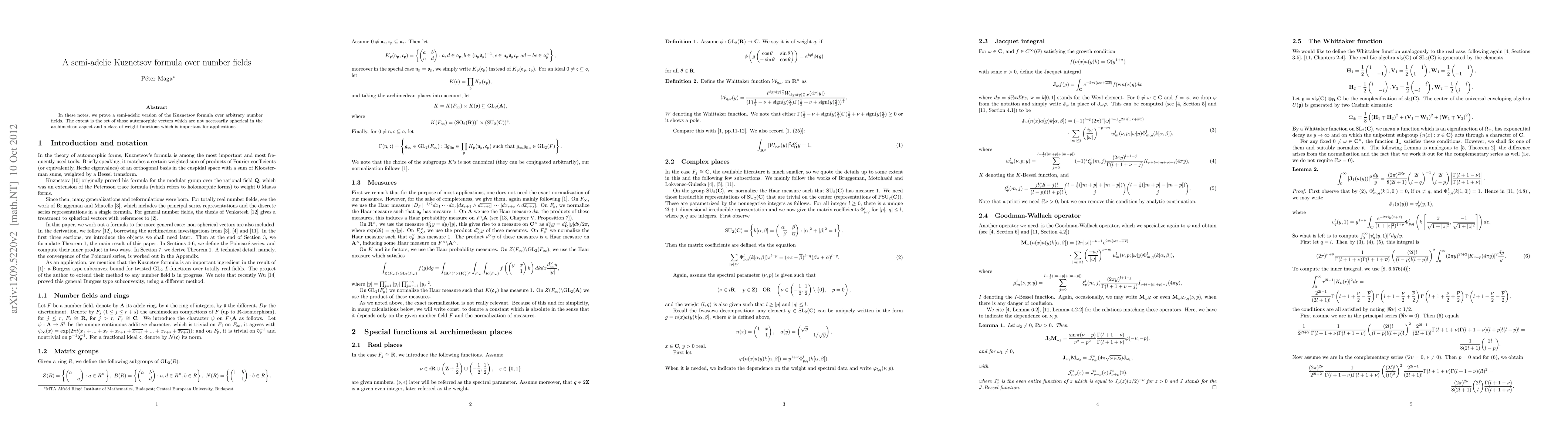 Summary: This paper establishes a semi-adelic version of the Kuznetsov formula for number fields, focusing on non-spherical automorphic vectors and a relevant weight function class, crucial for practical applications.