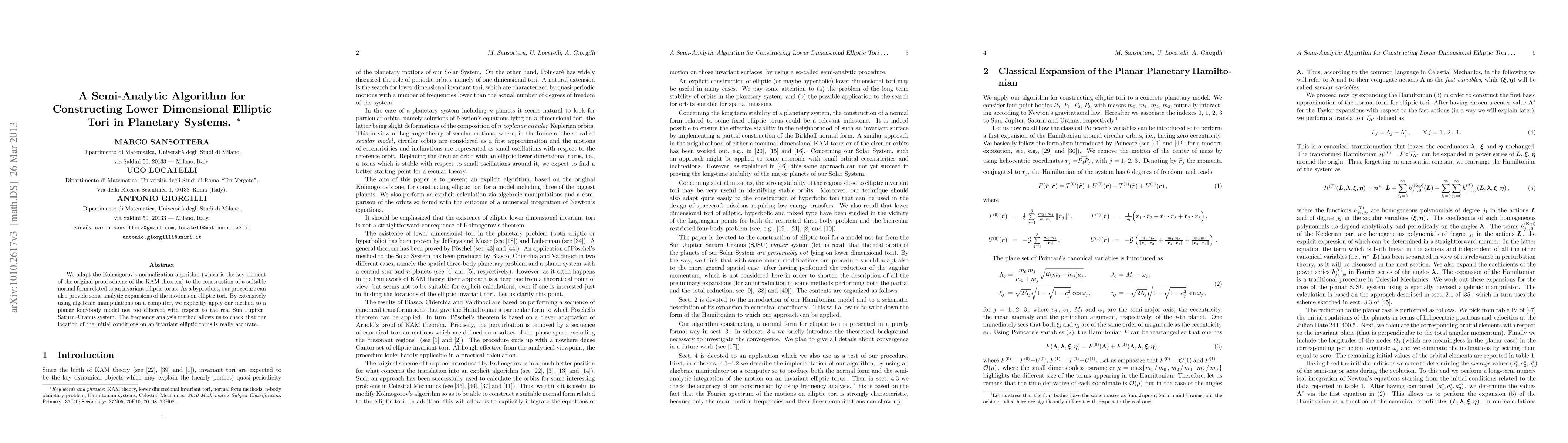 This paper adapts Kolmogorov's normalization algorithm to construct lower-dimensional elliptic tori in planetary systems, providing a normal form for invariant elliptic tori. The method is applied to a planar four-body model, demonstrating its accuracy through frequency analysis.