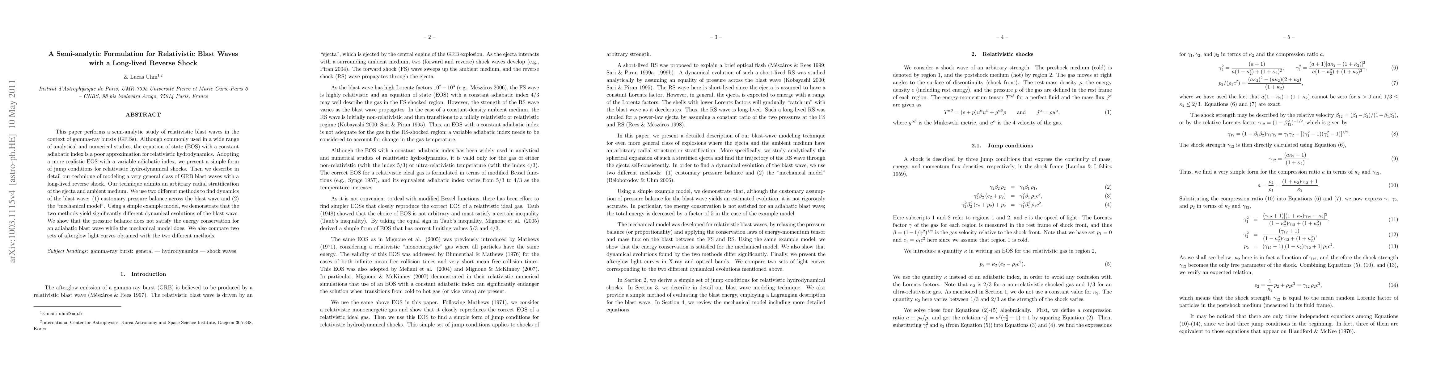 This paper presents a semi-analytic model for relativistic blast waves in gamma-ray bursts using a variable adiabatic index equation of state, demonstrating significant differences in blast wave dynamics between pressure balance and the mechanical model, with the latter satisfying energy conservation.