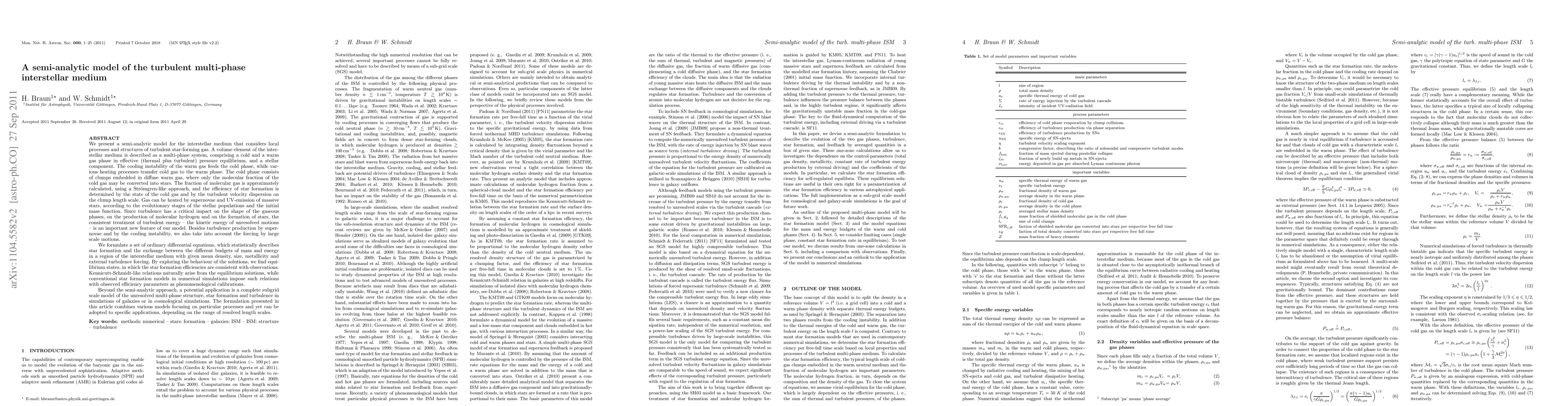 This paper introduces a semi-analytic model for the turbulent multi-phase interstellar medium, emphasizing the role of turbulence in shaping gaseous phases and star formation. The model describes equilibrium states consistent with observational data, naturally deriving Kennicutt-Schmidt-like relations without phenomenological calibrations.