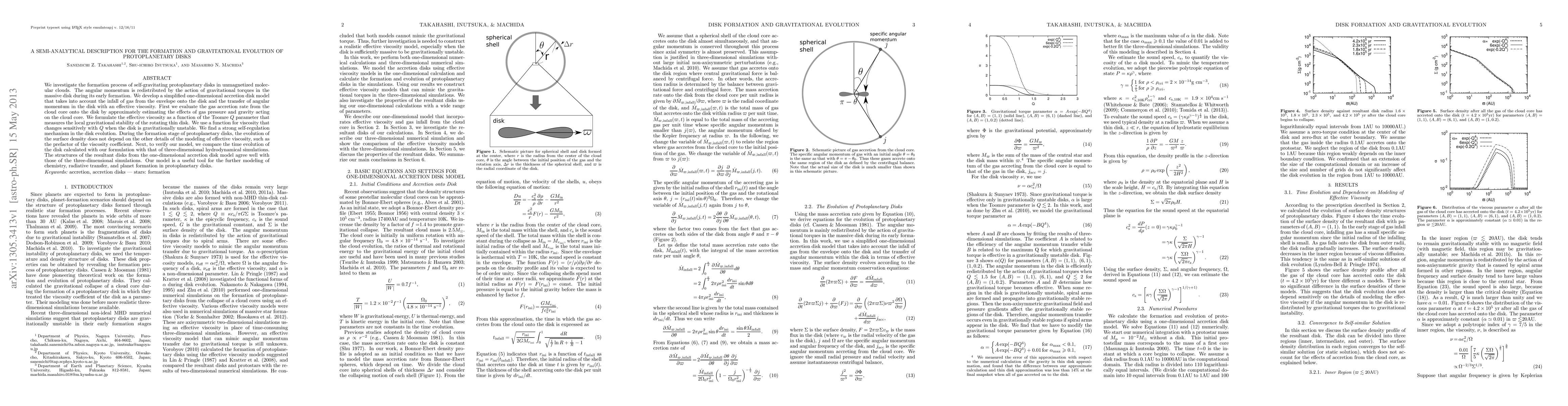 This paper develops a simplified one-dimensional model for the formation and evolution of self-gravitating protoplanetary disks, incorporating gravitational torques and effective viscosity. The model's predictions align well with three-dimensional simulations, providing a robust tool for studying disk chemistry, radiative transfer, and planet formation.